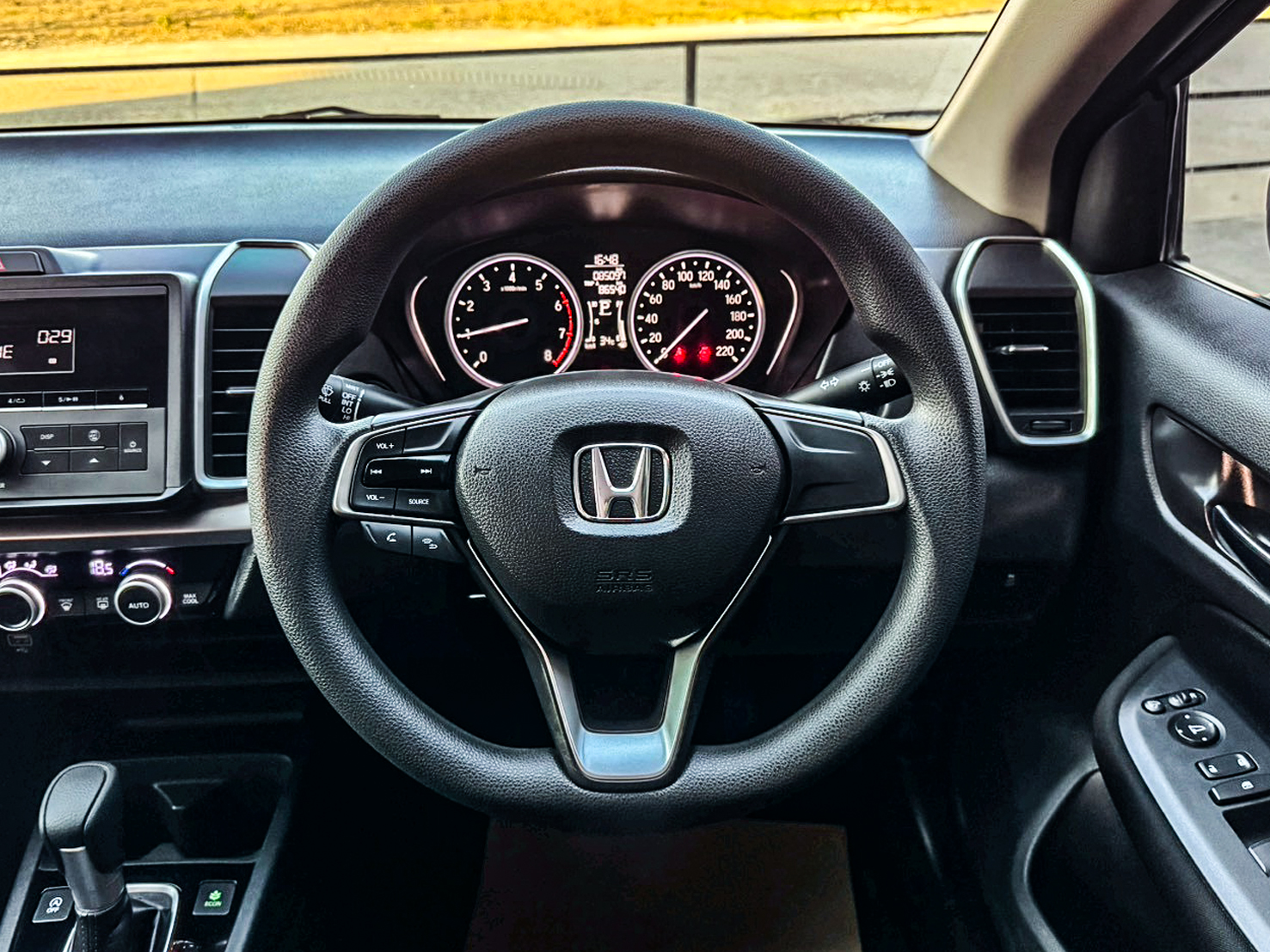 ชื่อรุ่น: HONDA CITY 1.0 V TURBO ปี: 2022 ไมล์: 85,097 km ราคา: 419,000 บาท ผ่อน 84งวด = 7,015 (ค่างวดจะแตกต่างกันตามธนาคารและดอกเบี้ย) Option ของรุ่น V - ล้ออัลลอย ขนาด 15 นิ้ว พร้อมยาง 185/60 R15 - กระจกมองข้าง ปรับและพับ ด้วยไฟฟ้า - กระจกมองข้าง พร้อมไฟเลี้ยวในตัว - มือเปิดประตูภายในห้องโดยสาร โครเมียม - ระบบปรับอากาศแบบอัตโนมัติ พร้อมจอแสดงผลแบบดิจิตอล - ระบบกุญแจ Honda Smart Key System - มาตรวัดแบบ Optitron สีขาว Option มาตรฐาน - เครื่องยนต์เบนซิน 1.0 TURBO 122 แรงม้า 173 นิวตันเมตร - เกียร์อัตโนมัติ CVT รองรับน้ำมัน E20 - ระบบเบรกคู่หน้า ดิสก์เบรก / คู่หลัง ดรัมเบรก - พวงมาลัยพาวเวอร์ไฟฟ้า EPS - ช่วงล่างด้านหน้า McPherson Strut พร้อมเหล็กกันโคลง - ช่วงล่างด้านหลัง Torsion Beam - ล้อกระทะเหล็ก – ฝาครอบล้อ ขนาด 15 นิ้ว พร้อมยาง 185/60 R15 - ยางอะไหล่ T135/80 D15 - ไฟหน้า Projector Lens แบบฮาโลเจน - ระบบปิดไฟหน้าอัตโนมัติ เมื่อดับเครื่องยนต์ - ไฟ Daytime Running Light แบบ LED - ไฟท้าย แบบ LED - กระจังหน้าโครเมียม - มือเปิดประตูภายนอก สีเดียวกับตัวรถ - ระบบปัดน้ำฝน แบบปรับตั้งหน่วงเวลาได้ - เสาอากาศแบบครีบฉลาม - ระบบไล่ฝ้ากระจกบังลมหน้า – หลัง - กระจกมองข้าง ปรับด้วยไฟฟ้า พับด้วยมือ - ภายในห้องโดยสาร โทนสีดำ - เบาะนั่งหุ้มด้วยผ้า - เบาะนั่งคนขับ ปรับด้วยมือ 6 ทิศทาง - เบาะนั่งผู้โดยสารตอนหน้า ปรับด้วยมือ 4 ทิศทาง - ระบบปรับอากาศ แบบธรรมดา - กุญแจรีโมท พร้อมสวิตซ์เปิดฝากระโปรงท้าย - ปุ่มสตาร์ทเครื่องยนต์ Push Start Button - ระบบ Idle Stop พร้อมสวิตซ์เปิด-ปิด - พวงมาลัยปรับได้ 4 ทิศทาง (ขึ้น-ลง-เข้า-ออก) - มาตรวัด พร้อมหน้าจอแสดงข้อมูลการขับขี่ MID - ไฟแสดงผลการขับขี่แบบประหยัด Eco Indicator - ปุ่ม ECON - ช่องชาร์จไฟ 12V 1 ตำแหน่ง - ที่บังแดด พร้อมกระจกแต่งหน้า ฝั่งคนขับ - ไฟอ่านแผนที่ด้านหน้า - ช่องเก็บเอกสารด้านหลังเบาะนั่งผู้โดยสารตอนหน้า - ไฟส่องสว่างภายในห้องโดยสาร - มือจับภายในห้องโดยสาร 3 ตำแหน่ง - ไฟส่องสว่างที่เก็บสัมภาระด้านท้าย - เครื่องเสียงวิทยุ AM/FM - ระบบเชื่อมต่อไร้สาย Bluetooth - สวิตซ์ควบคุมเครื่องเสียง / รับสาย-โทรออก บนพวงมาลัย - ช่องเชื่อมต่อ USB - ลำโพง 4 ตำแหน่ง - ระบบเบรกป้องกันล้อล็อค ABS - ระบบกระจายแรงเบรก EBD - ระบบช่วยควบคุมการทรงตัวขณะเข้าโค้ง VSA - ระบบช่วยออกตัวบนทางลาดชัน HSA - สัญญาณไฟฉุกเฉินอัตโนมัติขณะเบรกกะทันหัน ESS - ระบบล็อกประตูรถอัตโนมัติ Auto Door Lock by Speed - ถุงลมนิรภัย 4 ตำแหน่ง (คู่หน้า-ด้านข้าง) - ระบบเตือนคาดเข็มขัดนิรภัยผู้โดยสารด้านหน้า - ระบบสัญญาณกันขโมย - ระบบกุญแจนิรภัย Immobilizer - จุดยึดเบาะนั่งเด็ก ISOFIX