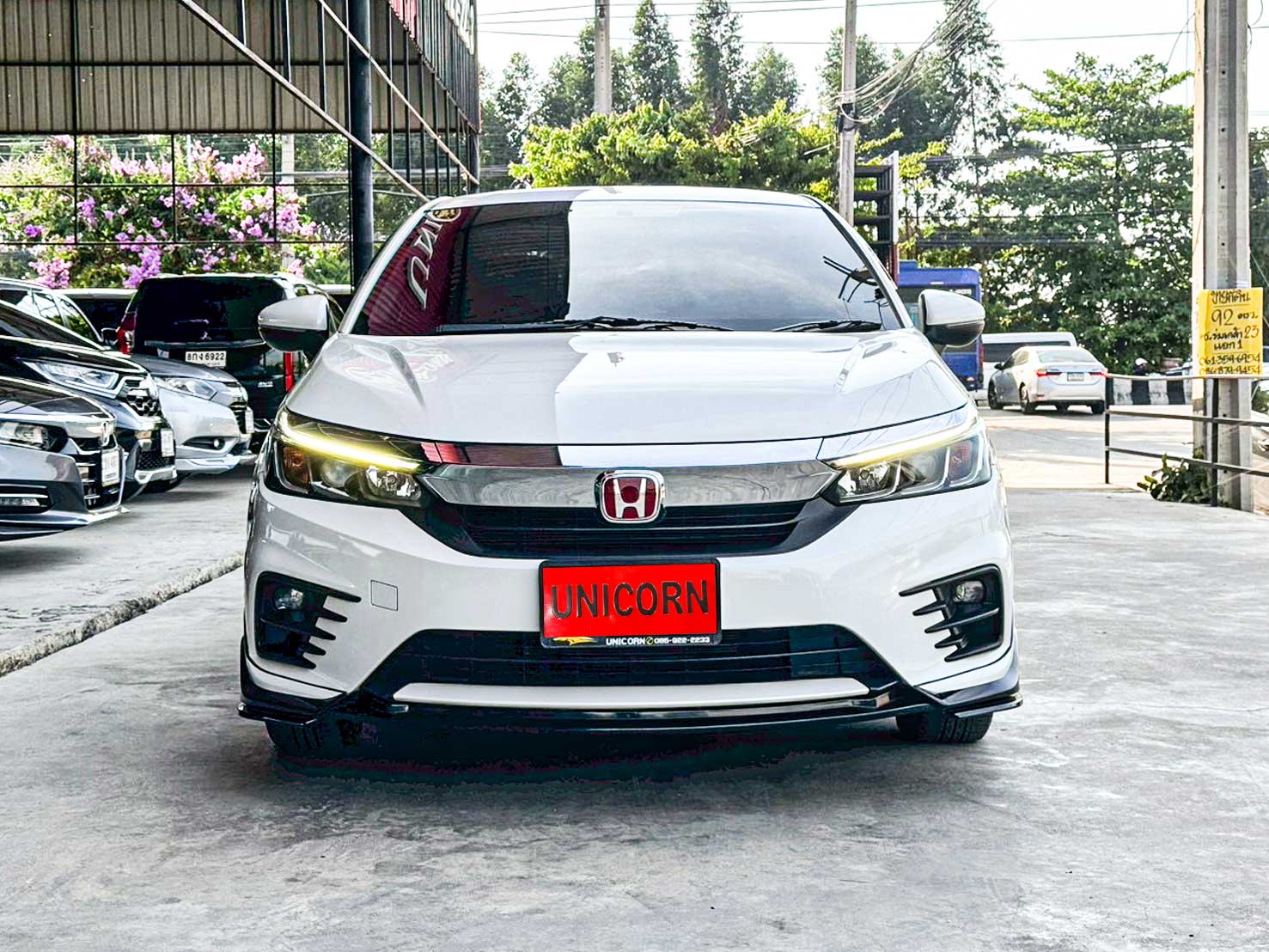 ชื่อรุ่น: HONDA CITY 1.0 TURBO SV ปี: 2022 ไมล์: 32,660 km ราคา: 449,000 บาท ผ่อน 84งวด = 7,518 (ค่างวดจะแตกต่างกันตามธนาคารและดอกเบี้ย) ชุดแต่งเพิ่มเติม - สเกิร์ตรอบคัน - Logo H แดง - พรมหนังสีดำแดง - ภายในตกแต่งลายคาร์บอนบางจุด Option ของรุ่น SV - ล้ออัลลอย สีทูโทน ขนาด 15 นิ้ว พร้อมยาง 185/60 R15 - มือเปิดประตูภายนอก โครเมียม - ภายในห้องโดยสาร สีทูโทน (สีเบจ Ivory/สีดำ) - เบาะนั่งหุ้มด้วยหนัง สีดำ - วัสดุตกแต่งภายในห้องโดยสาร สีดำเงา Piano Black - หน้าจอเครื่องเสียงระบบสัมผัส Advanced Touch ขนาด 8 นิ้ว - รองรับระบบ Apple Car Play / Android Auto - รองรับการเชื่อมต่อ Smart Phone - รองรับการสั่งงานด้วยเสียง SIRI - ช่องเชื่อมต่อ USB 2 ช่อง - กล้องมองภาพขณะถอยจอด ปรับมุมมองได้ 3 ระดับ Option มาตรฐาน - เครื่องยนต์เบนซิน 1.0 TURBO 122 แรงม้า 173 นิวตันเมตร - เกียร์อัตโนมัติ CVT รองรับน้ำมัน E20 - ระบบเบรกคู่หน้า ดิสก์เบรก / คู่หลัง ดรัมเบรก - พวงมาลัยพาวเวอร์ไฟฟ้า EPS - ช่วงล่างด้านหน้า McPherson Strut พร้อมเหล็กกันโคลง - ช่วงล่างด้านหลัง Torsion Beam - ยางอะไหล่ T135/80 D15 - ไฟหน้า Projector Lens แบบฮาโลเจน - ระบบปิดไฟหน้าอัตโนมัติ เมื่อดับเครื่องยนต์ - ไฟ Daytime Running Light แบบ LED - ไฟท้าย แบบ LED - กระจังหน้าโครเมียม - ระบบปัดน้ำฝน แบบปรับตั้งหน่วงเวลาได้ - เสาอากาศแบบครีบฉลาม - ระบบไล่ฝ้ากระจกบังลมหน้า – หลัง - กระจกมองข้าง ปรับด้วยไฟฟ้า พับด้วยมือ - ภายในห้องโดยสาร โทนสีดำ - เบาะนั่งคนขับ ปรับด้วยมือ 6 ทิศทาง - เบาะนั่งผู้โดยสารตอนหน้า ปรับด้วยมือ 4 ทิศทาง - ระบบปรับอากาศ แบบธรรมดา - กุญแจรีโมท พร้อมสวิตซ์เปิดฝากระโปรงท้าย - ปุ่มสตาร์ทเครื่องยนต์ Push Start Button - ระบบ Idle Stop พร้อมสวิตซ์เปิด-ปิด - พวงมาลัยปรับได้ 4 ทิศทาง (ขึ้น-ลง-เข้า-ออก) - มาตรวัด พร้อมหน้าจอแสดงข้อมูลการขับขี่ MID - ไฟแสดงผลการขับขี่แบบประหยัด Eco Indicator - ปุ่ม ECON - ช่องชาร์จไฟ 12V 1 ตำแหน่ง - ที่บังแดด พร้อมกระจกแต่งหน้า ฝั่งคนขับ - ไฟอ่านแผนที่ด้านหน้า - ช่องเก็บเอกสารด้านหลังเบาะนั่งผู้โดยสารตอนหน้า - ไฟส่องสว่างภายในห้องโดยสาร - มือจับภายในห้องโดยสาร 3 ตำแหน่ง - ไฟส่องสว่างที่เก็บสัมภาระด้านท้าย - ระบบเชื่อมต่อไร้สาย Bluetooth - สวิตซ์ควบคุมเครื่องเสียง / รับสาย-โทรออก บนพวงมาลัย - ช่องเชื่อมต่อ USB - ลำโพง 4 ตำแหน่ง - ระบบเบรกป้องกันล้อล็อค ABS - ระบบกระจายแรงเบรก EBD - ระบบช่วยควบคุมการทรงตัวขณะเข้าโค้ง VSA - ระบบช่วยออกตัวบนทางลาดชัน HSA - สัญญาณไฟฉุกเฉินอัตโนมัติขณะเบรกกะทันหัน ESS - ระบบล็อกประตูรถอัตโนมัติ Auto Door Lock by Speed - ถุงลมนิรภัย 4 ตำแหน่ง (คู่หน้า-ด้านข้าง) - ระบบเตือนคาดเข็มขัดนิรภัยผู้โดยสารด้านหน้า - ระบบสัญญาณกันขโมย - ระบบกุญแจนิรภัย Immobilizer - จุดยึดเบาะนั่งเด็ก ISOFIX