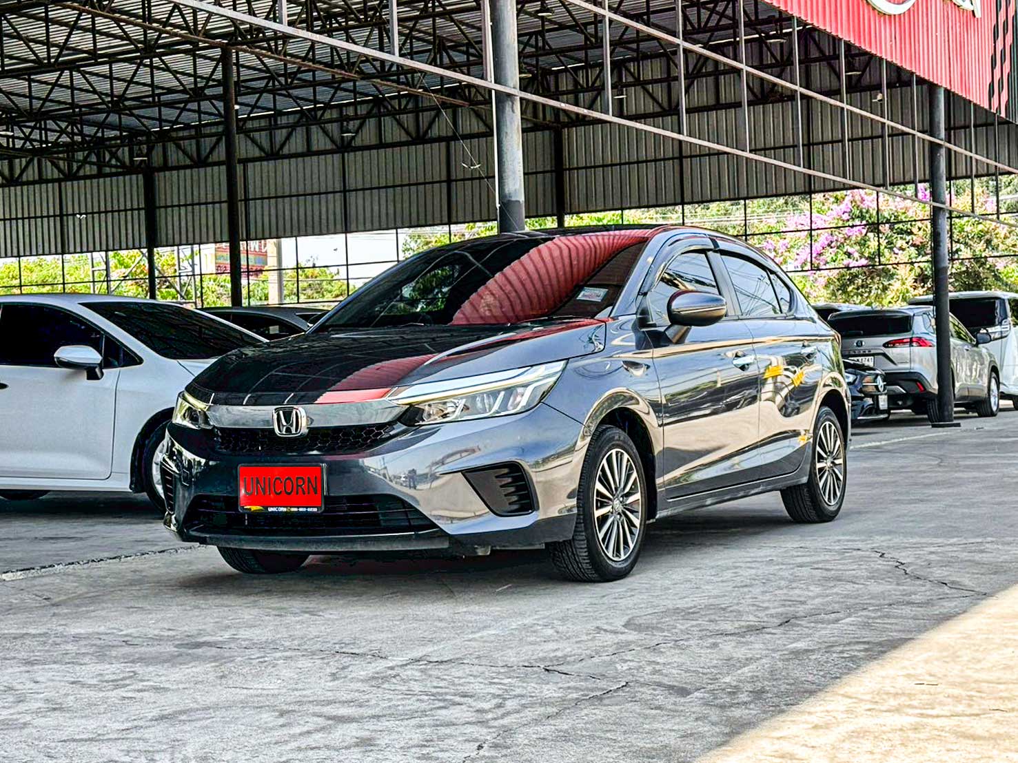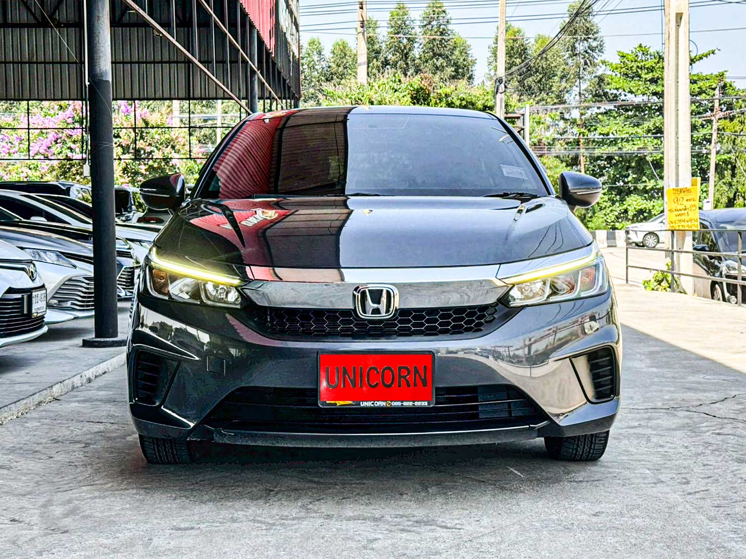 ชื่อรุ่น: HONDA CITY 1.0 TURBO SV ปี: 2021 ไมล์: 48,757 km ราคา: 449,000 บาท ผ่อน 84งวด = 7,518 (ค่างวดจะแตกต่างกันตามธนาคารและดอกเบี้ย) Option ของรุ่น SV - ล้ออัลลอย สีทูโทน ขนาด 15 นิ้ว พร้อมยาง 185/60 R15 - มือเปิดประตูภายนอก โครเมียม - ภายในห้องโดยสาร สีทูโทน (สีเบจ Ivory/สีดำ) - เบาะนั่งหุ้มด้วยหนัง สีดำ - วัสดุตกแต่งภายในห้องโดยสาร สีดำเงา Piano Black - หน้าจอเครื่องเสียงระบบสัมผัส Advanced Touch ขนาด 8 นิ้ว - รองรับระบบ Apple Car Play / Android Auto - รองรับการเชื่อมต่อ Smart Phone - รองรับการสั่งงานด้วยเสียง SIRI - ช่องเชื่อมต่อ USB 2 ช่อง - กล้องมองภาพขณะถอยจอด ปรับมุมมองได้ 3 ระดับ Option มาตรฐาน - เครื่องยนต์เบนซิน 1.0 TURBO 122 แรงม้า 173 นิวตันเมตร - เกียร์อัตโนมัติ CVT รองรับน้ำมัน E20 - ระบบเบรกคู่หน้า ดิสก์เบรก / คู่หลัง ดรัมเบรก - พวงมาลัยพาวเวอร์ไฟฟ้า EPS - ช่วงล่างด้านหน้า McPherson Strut พร้อมเหล็กกันโคลง - ช่วงล่างด้านหลัง Torsion Beam - ยางอะไหล่ T135/80 D15 - ไฟหน้า Projector Lens แบบฮาโลเจน - ระบบปิดไฟหน้าอัตโนมัติ เมื่อดับเครื่องยนต์ - ไฟ Daytime Running Light แบบ LED - ไฟท้าย แบบ LED - กระจังหน้าโครเมียม - ระบบปัดน้ำฝน แบบปรับตั้งหน่วงเวลาได้ - เสาอากาศแบบครีบฉลาม - ระบบไล่ฝ้ากระจกบังลมหน้า – หลัง - กระจกมองข้าง ปรับด้วยไฟฟ้า พับด้วยมือ - ภายในห้องโดยสาร โทนสีดำ - เบาะนั่งคนขับ ปรับด้วยมือ 6 ทิศทาง - เบาะนั่งผู้โดยสารตอนหน้า ปรับด้วยมือ 4 ทิศทาง - ระบบปรับอากาศ แบบธรรมดา - กุญแจรีโมท พร้อมสวิตซ์เปิดฝากระโปรงท้าย - ปุ่มสตาร์ทเครื่องยนต์ Push Start Button - ระบบ Idle Stop พร้อมสวิตซ์เปิด-ปิด - พวงมาลัยปรับได้ 4 ทิศทาง (ขึ้น-ลง-เข้า-ออก) - มาตรวัด พร้อมหน้าจอแสดงข้อมูลการขับขี่ MID - ไฟแสดงผลการขับขี่แบบประหยัด Eco Indicator - ปุ่ม ECON - ช่องชาร์จไฟ 12V 1 ตำแหน่ง - ที่บังแดด พร้อมกระจกแต่งหน้า ฝั่งคนขับ - ไฟอ่านแผนที่ด้านหน้า - ช่องเก็บเอกสารด้านหลังเบาะนั่งผู้โดยสารตอนหน้า - ไฟส่องสว่างภายในห้องโดยสาร - มือจับภายในห้องโดยสาร 3 ตำแหน่ง - ไฟส่องสว่างที่เก็บสัมภาระด้านท้าย - ระบบเชื่อมต่อไร้สาย Bluetooth - สวิตซ์ควบคุมเครื่องเสียง / รับสาย-โทรออก บนพวงมาลัย - ช่องเชื่อมต่อ USB - ลำโพง 4 ตำแหน่ง - ระบบเบรกป้องกันล้อล็อค ABS - ระบบกระจายแรงเบรก EBD - ระบบช่วยควบคุมการทรงตัวขณะเข้าโค้ง VSA - ระบบช่วยออกตัวบนทางลาดชัน HSA - สัญญาณไฟฉุกเฉินอัตโนมัติขณะเบรกกะทันหัน ESS - ระบบล็อกประตูรถอัตโนมัติ Auto Door Lock by Speed - ถุงลมนิรภัย 4 ตำแหน่ง (คู่หน้า-ด้านข้าง) - ระบบเตือนคาดเข็มขัดนิรภัยผู้โดยสารด้านหน้า - ระบบสัญญาณกันขโมย - ระบบกุญแจนิรภัย Immobilizer - จุดยึดเบาะนั่งเด็ก ISOFIX