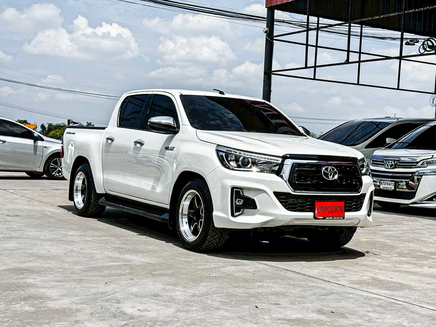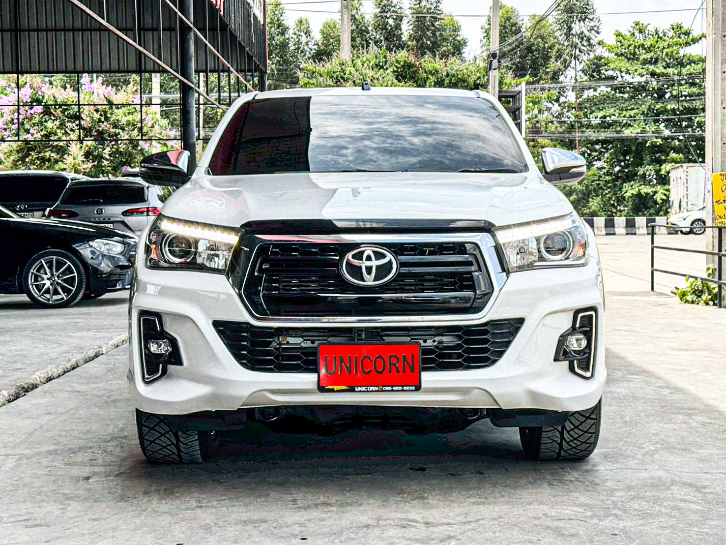 ชุดแต่งเพิ่มเติม - ล้อแม็กซ์ Weld - วัดบูส Auto Meter - จัดทรงยี่ราฟแคระ Option มาตรฐาน - เครื่องยนต์ดีเซล 2.4 ลิตร รหัส 2GD-FTV (VN Turbo + Intercooler) - กำลังสูงสุด 150 แรงม้า ที่ 3,400 รอบ/นาที - แรงบิดสูงสุด 400 นิวตันเมตร ที่ 1,600–2,000 รอบ/นาที - ระบบเกียร์อัตโนมัติ 6 จังหวะ พร้อม Sequential Shift - ไฟหน้าแบบโปรเจคเตอร์ Halogen - ระบบเปิด-ปิดไฟหน้าอัตโนมัติ - ไฟส่องสว่างเวลากลางวัน (Daytime Running Light) - กระจังหน้าโครเมียมรมดำ - กระจกมองข้างปรับไฟฟ้า พร้อมไฟเลี้ยวในตัว - มือจับประตูและกระจกมองข้างสีเดียวกับตัวรถ - ภายในสีดำตกแต่งโทนเงินเมทัลลิก - เบาะผ้าสีดำ - พวงมาลัยหุ้มหนัง พร้อมปุ่มควบคุมเครื่องเสียง - หน้าจอแสดงข้อมูลการขับขี่ MID - เครื่องเสียงหน้าจอสัมผัส (Touchscreen) - รองรับ Bluetooth / USB / AUX / วิทยุ FM-AM - ระบบปรับอากาศแบบธรรมดา - กระจกหน้าต่างไฟฟ้า พร้อมระบบกันหนีบด้านคนขับ - ช่องเก็บของ / ช่องวางแก้วน้ำรอบคัน - ระบบเซ็นเซอร์ถอยหลัง 2 จุด - กล้องมองหลัง - ชุดแต่งรอบคันโทนสีเดียวกับตัวรถ (กันชน-กระจัง-ซุ้มล้อ) - กันชนหลังโครเมียม - ระบบรองรับเชื่อมต่อโทรศัพท์ - ระบบขับเคลื่อน 2 ล้อหลัง (แบบยกสูง Prerunner) - ระบบกันสะเทือนหน้าแบบอิสระปีกนกคู่ พร้อมคอยล์สปริง - ระบบกันสะเทือนหลังแบบแหนบซ้อน - ระบบเบรกหน้าแบบดิสก์เบรกมีครีบระบายความร้อน - ระบบเบรกหลังแบบดรัมเบรก - ระบบเบรก ABS / EBD / BA - ระบบควบคุมการทรงตัว VSC - ระบบป้องกันล้อหมุนฟรี TRC - ระบบช่วยออกตัวบนทางลาดชัน HAC - ระบบป้องกันการลื่นไถลขณะเข้าโค้ง TSC - ถุงลมนิรภัยคู่หน้า (Dual SRS Airbags) - ระบบกุญแจ Immobilizer + สัญญาณกันขโมย