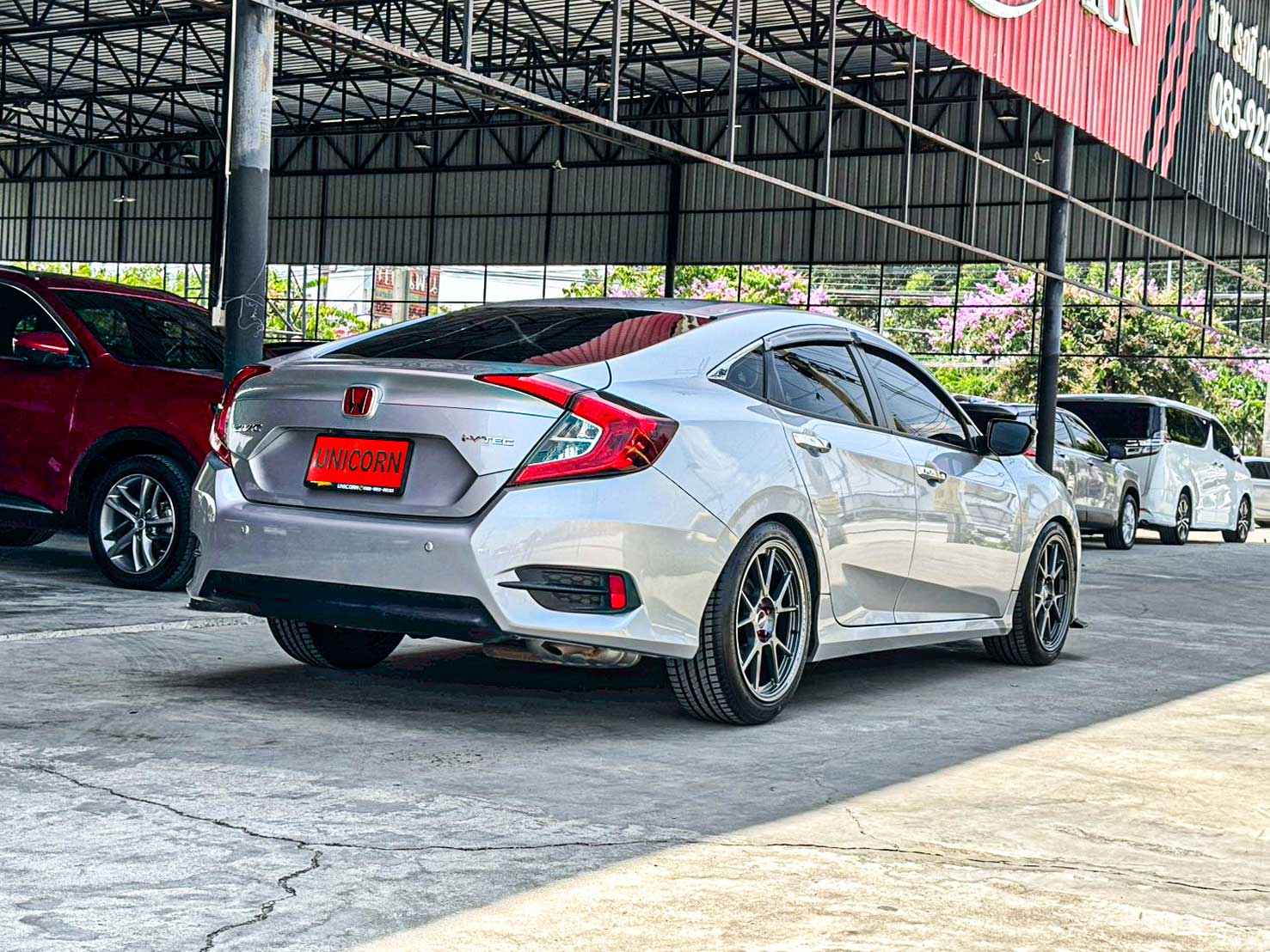 ชื่อรุ่น: HONDA CIVIC FC 1.8 EL ปี: 2016 ไมล์: 180,773 km ราคา: 489,000 บาท ผ่อน 84งวด = 9,696 (ค่างวดจะแตกต่างกันตามธนาคารและดอกเบี้ย) ชุดแต่งเพิ่มเติม - กระจังหน้า Type R - Logo H แดง - ลิ้นหน้าคาร์บอนแท้ - ล้อแม็กซ์แต่งสวยๆ Option มาตรฐาน - เครื่องยนต์เบนซิน 1.8 ลิตร i-VTEC - กำลังสูงสุด 141 แรงม้า - เกียร์อัตโนมัติ CVT - ระบบ ECON Mode - ระบบควบคุมการทรงตัว VSA - ระบบป้องกันล้อหมุนฟรี TCS - ระบบช่วยออกตัวบนทางลาดชัน HSA - พวงมาลัยไฟฟ้า EPS - ไฟหน้าแบบโปรเจคเตอร์ - ไฟ Daytime Running Light แบบ LED - ไฟตัดหมอกหน้า - ไฟท้าย LED - ล้ออัลลอย 16 นิ้ว - กระจกมองข้างปรับและพับไฟฟ้า - กระจกมองข้างพร้อมไฟเลี้ยว - กุญแจอัจฉริยะ Smart Key - ปุ่มสตาร์ทเครื่องยนต์ Push Start - หน้าจอเครื่องเสียงระบบสัมผัส - รองรับ CD / DVD / USB / HDMI / Bluetooth - กล้องมองหลัง ปรับมุมมองได้ - ระบบปรับอากาศอัตโนมัติ - ช่องแอร์สำหรับผู้โดยสารตอนหลัง - เบาะหนัง - เบาะคนขับปรับระดับได้ - เบาะหลังพับได้ 60:40 - พวงมาลัยมัลติฟังก์ชัน - ระบบ Cruise Control - หน้าจอแสดงข้อมูลการขับขี่ MID - ระบบเบรก ABS - ระบบกระจายแรงเบรก EBD - ระบบเสริมแรงเบรก BA - ถุงลมนิรภัยคู่หน้า - ระบบ Immobilizer - ระบบเซ็นทรัลล็อก
