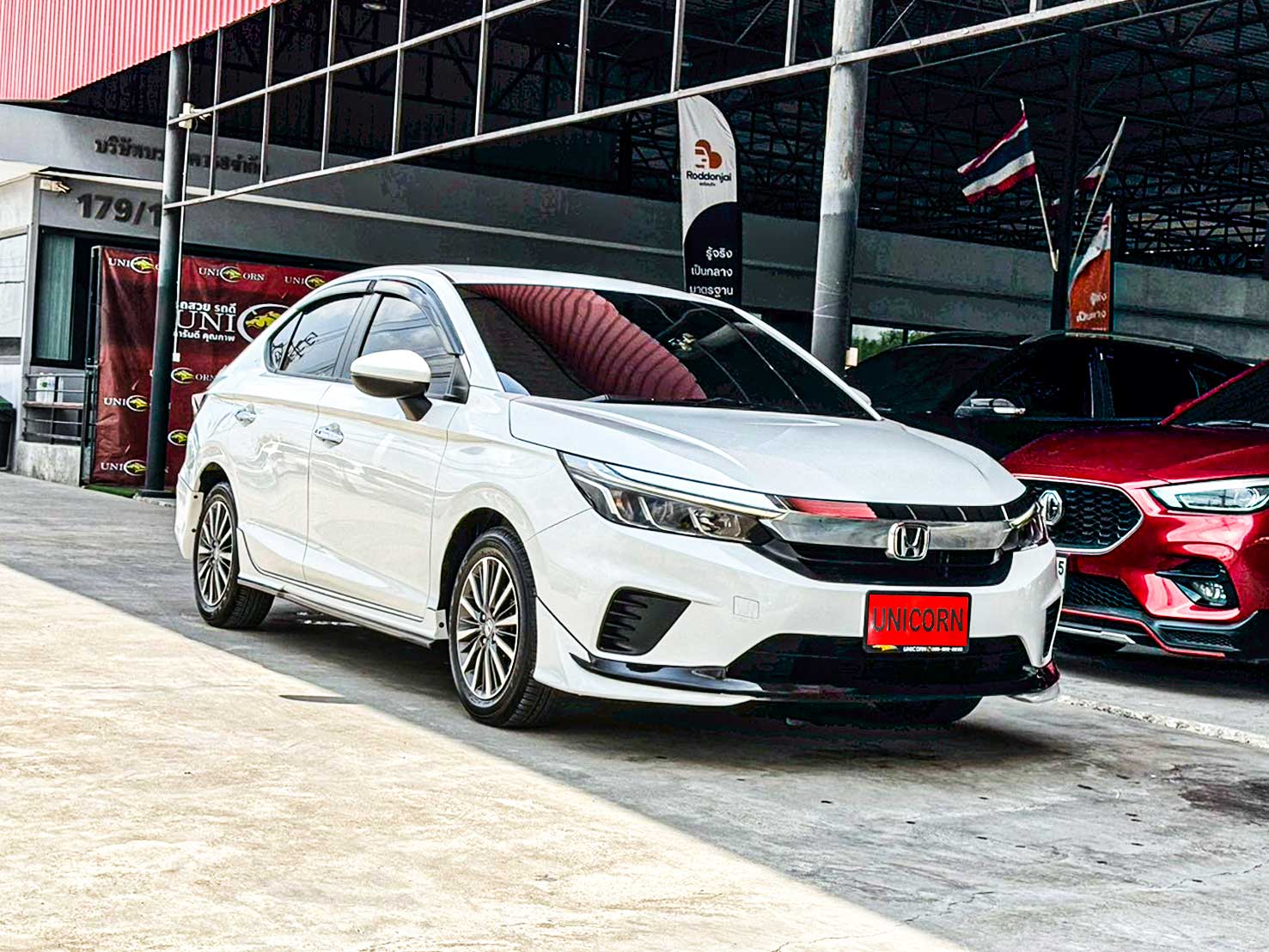 ชื่อรุ่น: HONDA CITY 1.0 TURBO SV ปี: 2021 ไมล์: 45,477 km ราคา: 449,000 บาท ผ่อน 84งวด = 7,518 (ค่างวดจะแตกต่างกันตามธนาคารและดอกเบี้ย) Option ของรุ่น SV - ล้ออัลลอย สีทูโทน ขนาด 15 นิ้ว พร้อมยาง 185/60 R15 - มือเปิดประตูภายนอก โครเมียม - ภายในห้องโดยสาร สีทูโทน (สีเบจ Ivory/สีดำ) - เบาะนั่งหุ้มด้วยหนัง สีดำ - วัสดุตกแต่งภายในห้องโดยสาร สีดำเงา Piano Black - หน้าจอเครื่องเสียงระบบสัมผัส Advanced Touch ขนาด 8 นิ้ว - รองรับระบบ Apple Car Play / Android Auto - รองรับการเชื่อมต่อ Smart Phone - รองรับการสั่งงานด้วยเสียง SIRI - ช่องเชื่อมต่อ USB 2 ช่อง - กล้องมองภาพขณะถอยจอด ปรับมุมมองได้ 3 ระดับ Option มาตรฐาน - เครื่องยนต์เบนซิน 1.0 TURBO 122 แรงม้า 173 นิวตันเมตร - เกียร์อัตโนมัติ CVT รองรับน้ำมัน E20 - ระบบเบรกคู่หน้า ดิสก์เบรก / คู่หลัง ดรัมเบรก - พวงมาลัยพาวเวอร์ไฟฟ้า EPS - ช่วงล่างด้านหน้า McPherson Strut พร้อมเหล็กกันโคลง - ช่วงล่างด้านหลัง Torsion Beam - ยางอะไหล่ T135/80 D15 - ไฟหน้า Projector Lens แบบฮาโลเจน - ระบบปิดไฟหน้าอัตโนมัติ เมื่อดับเครื่องยนต์ - ไฟ Daytime Running Light แบบ LED - ไฟท้าย แบบ LED - กระจังหน้าโครเมียม - ระบบปัดน้ำฝน แบบปรับตั้งหน่วงเวลาได้ - เสาอากาศแบบครีบฉลาม - ระบบไล่ฝ้ากระจกบังลมหน้า – หลัง - กระจกมองข้าง ปรับด้วยไฟฟ้า พับด้วยมือ - ภายในห้องโดยสาร โทนสีดำ - เบาะนั่งคนขับ ปรับด้วยมือ 6 ทิศทาง - เบาะนั่งผู้โดยสารตอนหน้า ปรับด้วยมือ 4 ทิศทาง - ระบบปรับอากาศ แบบธรรมดา - กุญแจรีโมท พร้อมสวิตซ์เปิดฝากระโปรงท้าย - ปุ่มสตาร์ทเครื่องยนต์ Push Start Button - ระบบ Idle Stop พร้อมสวิตซ์เปิด-ปิด - พวงมาลัยปรับได้ 4 ทิศทาง (ขึ้น-ลง-เข้า-ออก) - มาตรวัด พร้อมหน้าจอแสดงข้อมูลการขับขี่ MID - ไฟแสดงผลการขับขี่แบบประหยัด Eco Indicator - ปุ่ม ECON - ช่องชาร์จไฟ 12V 1 ตำแหน่ง - ที่บังแดด พร้อมกระจกแต่งหน้า ฝั่งคนขับ - ไฟอ่านแผนที่ด้านหน้า - ช่องเก็บเอกสารด้านหลังเบาะนั่งผู้โดยสารตอนหน้า - ไฟส่องสว่างภายในห้องโดยสาร - มือจับภายในห้องโดยสาร 3 ตำแหน่ง - ไฟส่องสว่างที่เก็บสัมภาระด้านท้าย - ระบบเชื่อมต่อไร้สาย Bluetooth - สวิตซ์ควบคุมเครื่องเสียง / รับสาย-โทรออก บนพวงมาลัย - ช่องเชื่อมต่อ USB - ลำโพง 4 ตำแหน่ง - ระบบเบรกป้องกันล้อล็อค ABS - ระบบกระจายแรงเบรก EBD - ระบบช่วยควบคุมการทรงตัวขณะเข้าโค้ง VSA - ระบบช่วยออกตัวบนทางลาดชัน HSA - สัญญาณไฟฉุกเฉินอัตโนมัติขณะเบรกกะทันหัน ESS - ระบบล็อกประตูรถอัตโนมัติ Auto Door Lock by Speed - ถุงลมนิรภัย 4 ตำแหน่ง (คู่หน้า-ด้านข้าง) - ระบบเตือนคาดเข็มขัดนิรภัยผู้โดยสารด้านหน้า - ระบบสัญญาณกันขโมย - ระบบกุญแจนิรภัย Immobilizer - จุดยึดเบาะนั่งเด็ก ISOFIX
