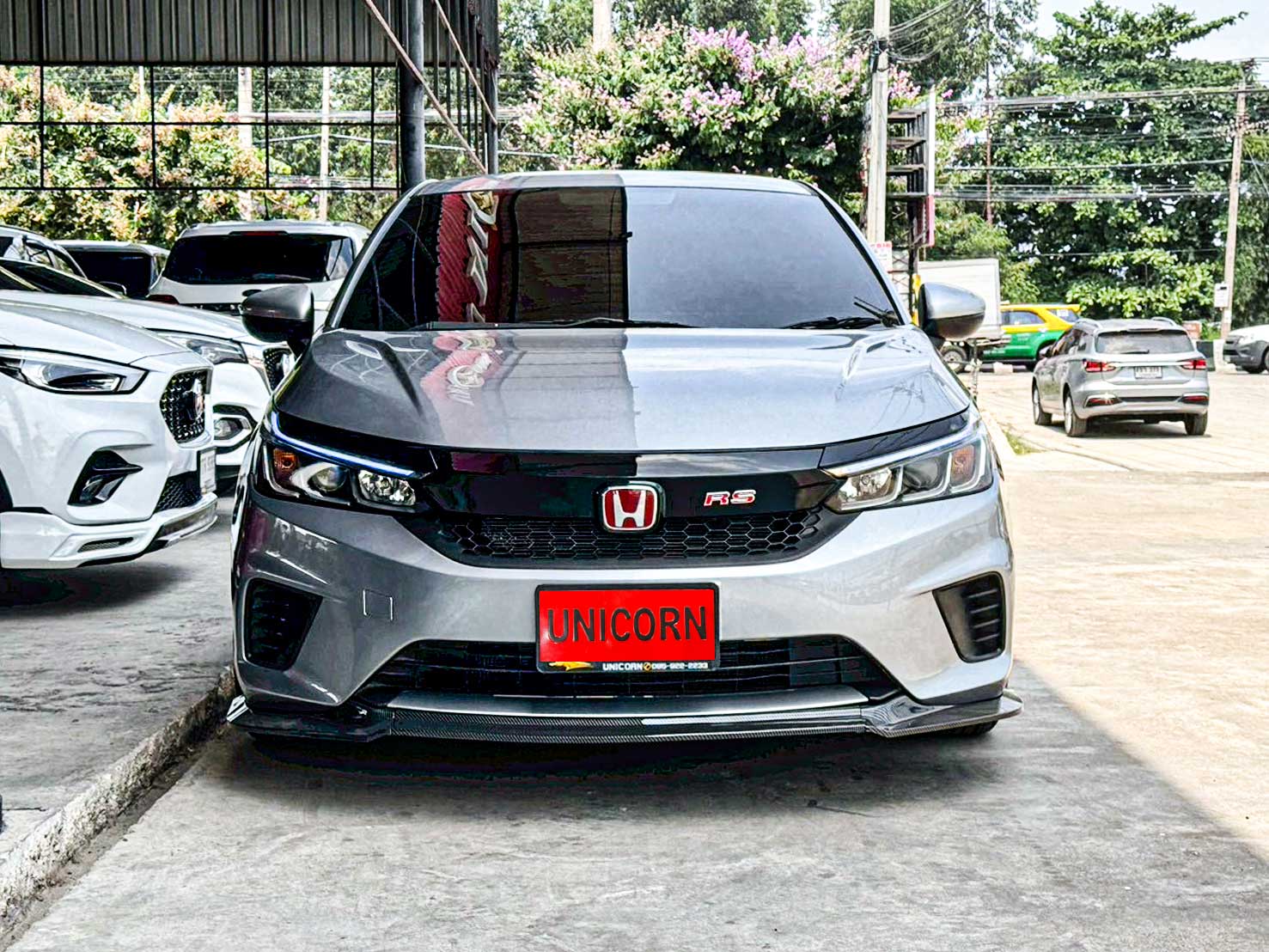 ชื่อรุ่น: HONDA CITY 1.0 TURBO S ปี: 2020 ไมล์: 125,110 km ราคา: 399,000 บาท ผ่อน 84งวด = 6,680 (ค่างวดจะแตกต่างกันตามธนาคารและดอกเบี้ย) ชุดแต่งเพิ่มเติม - Logo H แดง - ล้อแม็กซ์ TE37 สีดำ - กระจังหน้า RS - ลิ้นหน้าคาร์บอนแท้ Option มาตรฐาน - เครื่องยนต์เบนซิน 1.0 TURBO 122 แรงม้า 173 นิวตันเมตร - เกียร์อัตโนมัติ CVT รองรับน้ำมัน E20 - ระบบเบรกคู่หน้า ดิสก์เบรก / คู่หลัง ดรัมเบรก - พวงมาลัยพาวเวอร์ไฟฟ้า EPS - ช่วงล่างด้านหน้า McPherson Strut พร้อมเหล็กกันโคลง - ช่วงล่างด้านหลัง Torsion Beam - ยางอะไหล่ T135/80 D15 - ไฟหน้า Projector Lens แบบฮาโลเจน - ระบบปิดไฟหน้าอัตโนมัติ เมื่อดับเครื่องยนต์ - ไฟ Daytime Running Light แบบ LED - ไฟท้าย แบบ LED - กระจังหน้าโครเมียม - ระบบปัดน้ำฝน แบบปรับตั้งหน่วงเวลาได้ - เสาอากาศแบบครีบฉลาม - ระบบไล่ฝ้ากระจกบังลมหน้า – หลัง - กระจกมองข้าง ปรับด้วยไฟฟ้า พับด้วยมือ - ภายในห้องโดยสาร โทนสีดำ - เบาะนั่งคนขับ ปรับด้วยมือ 6 ทิศทาง - เบาะนั่งผู้โดยสารตอนหน้า ปรับด้วยมือ 4 ทิศทาง - ระบบปรับอากาศ แบบธรรมดา - กุญแจรีโมท พร้อมสวิตซ์เปิดฝากระโปรงท้าย - ปุ่มสตาร์ทเครื่องยนต์ Push Start Button - ระบบ Idle Stop พร้อมสวิตซ์เปิด-ปิด - พวงมาลัยปรับได้ 4 ทิศทาง (ขึ้น-ลง-เข้า-ออก) - มาตรวัด พร้อมหน้าจอแสดงข้อมูลการขับขี่ MID - ไฟแสดงผลการขับขี่แบบประหยัด Eco Indicator - ปุ่ม ECON - ช่องชาร์จไฟ 12V 1 ตำแหน่ง - ที่บังแดด พร้อมกระจกแต่งหน้า ฝั่งคนขับ - ไฟอ่านแผนที่ด้านหน้า - ช่องเก็บเอกสารด้านหลังเบาะนั่งผู้โดยสารตอนหน้า - ไฟส่องสว่างภายในห้องโดยสาร - มือจับภายในห้องโดยสาร 3 ตำแหน่ง - ไฟส่องสว่างที่เก็บสัมภาระด้านท้าย - ระบบเชื่อมต่อไร้สาย Bluetooth - สวิตซ์ควบคุมเครื่องเสียง / รับสาย-โทรออก บนพวงมาลัย - ช่องเชื่อมต่อ USB - ลำโพง 4 ตำแหน่ง - ระบบเบรกป้องกันล้อล็อค ABS - ระบบกระจายแรงเบรก EBD - ระบบช่วยควบคุมการทรงตัวขณะเข้าโค้ง VSA - ระบบช่วยออกตัวบนทางลาดชัน HSA - สัญญาณไฟฉุกเฉินอัตโนมัติขณะเบรกกะทันหัน ESS - ระบบล็อกประตูรถอัตโนมัติ Auto Door Lock by Speed - ถุงลมนิรภัย 4 ตำแหน่ง (คู่หน้า-ด้านข้าง) - ระบบเตือนคาดเข็มขัดนิรภัยผู้โดยสารด้านหน้า - ระบบสัญญาณกันขโมย - ระบบกุญแจนิรภัย Immobilizer - จุดยึดเบาะนั่งเด็ก ISOFIX