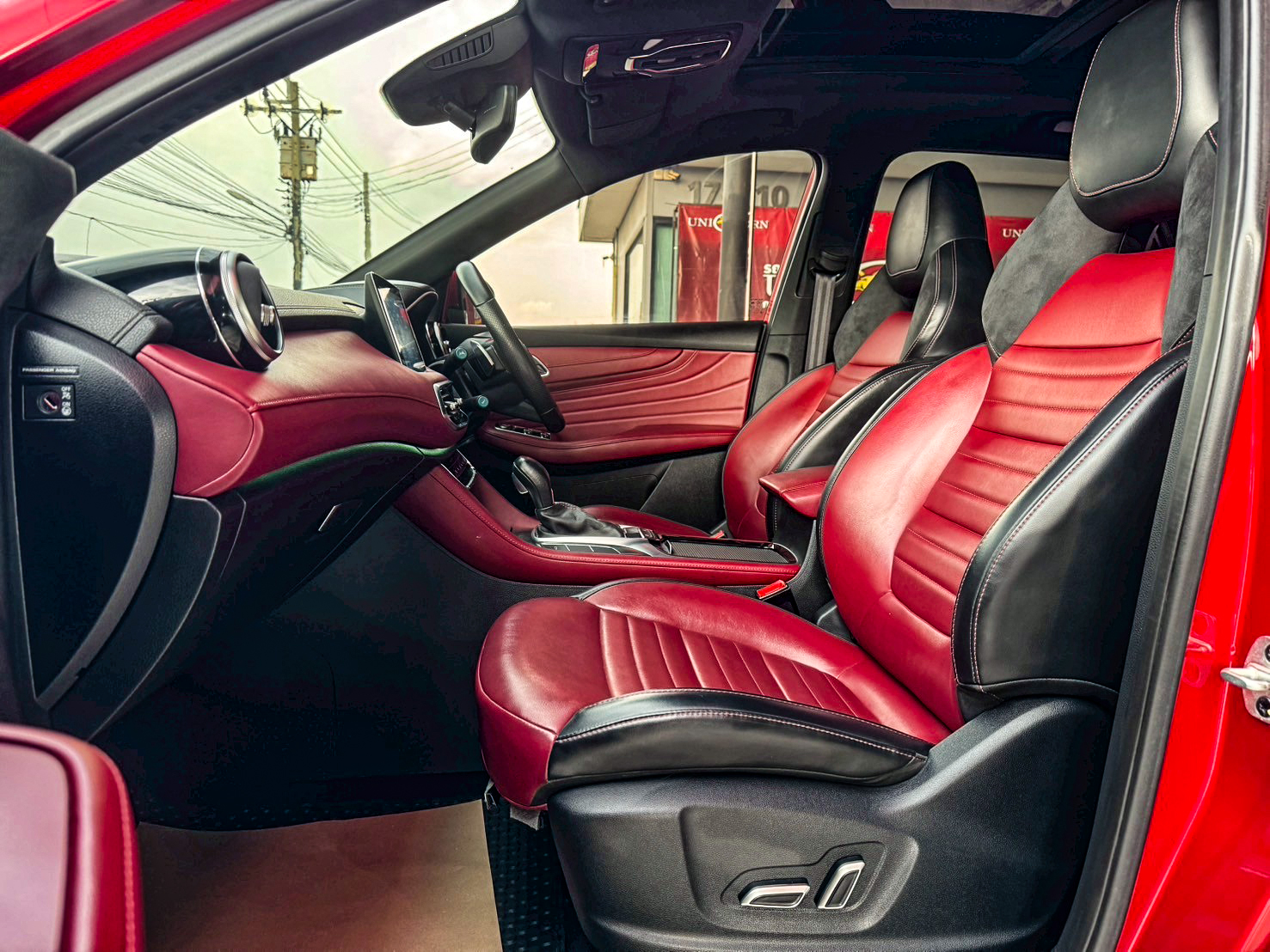 ชื่อรุ่น: MG HS 1.5 X Sunroof ปี: 2022 ไมล์: 67,045 km ราคา: 439,000 บาท ผ่อน 84งวด = 7,350 (ค่างวดจะแตกต่างกันตามธนาคารและดอกเบี้ย) Option มาตรฐาน - เครื่องยนต์เบนซิน 1.5 ลิตร เทอร์โบ 162 แรงม้า แรงบิด 250 นิวตันเมตร - เกียร์อัตโนมัติ 7 จังหวะ Dual Clutch (DCT) พร้อมโหมดแมนนวล - ระบบขับเคลื่อนล้อหน้า - หลังคาซันรูฟแบบพาโนรามา (Panoramic Sunroof) - ไฟหน้า Projector LED พร้อมไฟส่องสว่างเวลากลางวัน (Daytime Running Light) - ไฟท้าย LED - ระบบไฟหน้าเปิด–ปิดอัตโนมัติ - กระจกมองข้างพับ–ปรับไฟฟ้า พร้อมไฟเลี้ยว - ล้ออัลลอย 18 นิ้ว - ยางขนาด 235/50 R18 - ดิสก์เบรก 4 ล้อ พร้อมคาลิปเปอร์สีแดง (เฉพาะรุ่น X ขึ้นไป) - ภายในเบาะหนังสีดำ–แดง (Black-Red) - เบาะนั่งคนขับปรับไฟฟ้า 6 ทิศทาง - เบาะนั่งผู้โดยสารปรับมือ - เบาะหลังพับแยก 60:40 - พวงมาลัยมัลติฟังก์ชัน ปรับ 4 ทิศทาง - หน้าจอสัมผัส 10 นิ้ว รองรับ Apple CarPlay / Android Auto - ระบบสั่งงาน i-SMART (สั่งงานด้วยเสียงภาษาไทย) - ระบบนำทาง (Navigation) - ช่องชาร์จ USB - ระบบเสียง 6 ลำโพง - ระบบปรับอากาศอัตโนมัติ แยกอิสระซ้าย–ขวา (Dual Zone) - ช่องแอร์สำหรับผู้โดยสารด้านหลัง - ถุงลมนิรภัย 4 ใบ (คู่หน้า, ด้านข้าง) - ระบบเบรก ABS / EBD / BA - ระบบควบคุมการทรงตัว (ESP) - ระบบป้องกันล้อหมุนฟรี (TCS) - ระบบช่วยออกตัวบนทางลาดชัน (HSA) - ระบบควบคุมความเร็วขณะลงทางลาดชัน (HDC) - ระบบตรวจสอบความดันลมยาง (TPMS) - กล้องมองภาพรอบทิศทาง 360 องศา - เซ็นเซอร์กะระยะถอยหลัง - กุญแจ Smart Key + ปุ่มสตาร์ท (Push Start) - ระบบล็อกรถอัตโนมัติเมื่อเดินออกห่าง