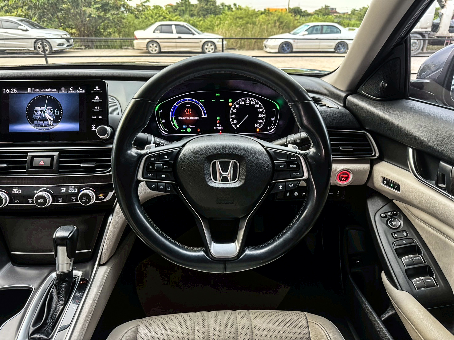 ชื่อรุ่น: HONDA ACCORD 2.0 HYBRID ปี: 2021 ไมล์: 77,525 km (วารันตีศูนย์ 2ปี 20,000km) ราคา: 849,000 บาท ผ่อน 84งวด = 14,214 (ค่างวดจะแตกต่างกันตามธนาคารและดอกเบี้ย) รายละเอียด Option - เครื่องยนต์เบนซิน 2.0 ลิตร Atkinson Cycle + มอเตอร์ไฟฟ้า 2 ตัว (i-MMD: Intelligent Multi-Mode Drive) - กำลังรวมทั้งระบบ 215 แรงม้า - เกียร์ E-CVT (Electronic Continuously Variable Transmission) - โหมดการขับขี่ EV Drive / Hybrid Drive / Engine Drive - ปรับโหมดการขับขี่ได้ Eco / Sport - ระบบเบรกมือไฟฟ้า (EPB) + Auto Brake Hold - ไฟหน้า LED พร้อมไฟ Daytime Running Light - ระบบเปิด-ปิดไฟหน้าอัตโนมัติ + ระบบปรับไฟสูงอัตโนมัติ (AHB) - ไฟตัดหมอกหน้า LED - ไฟท้าย LED - กระจกมองข้างปรับและพับไฟฟ้า พร้อมไฟเลี้ยว - มือจับประตูโครเมียม - ระบบ Rain Sensor ปัดน้ำฝนอัตโนมัติ - ล้ออัลลอย 17 นิ้ว - ภายในโทนสีดำ/เบจ หุ้มหนังแท้ - เบาะคู่หน้าปรับไฟฟ้า 8 ทิศทาง (พร้อม Lumbar Support ด้านคนขับ) - เบาะหลังพับแยก 60:40 + ที่วางแขนพร้อมที่วางแก้ว - พวงมาลัยหุ้มหนัง มัลติฟังก์ชัน พร้อม Paddle Shift - มาตรวัดพร้อมหน้าจอ TFT ขนาด 7 นิ้ว - หน้าจอเครื่องเสียง Touchscreen 8 นิ้ว รองรับ Apple CarPlay / Android Auto / Bluetooth / USB / HDMI - ระบบนำทาง Navigator (บางรุ่นย่อย) - ลำโพง 8 ตำแหน่ง - ระบบปรับอากาศอัตโนมัติแบบ Dual Zone + แอร์หลัง - ระบบชาร์จโทรศัพท์ไร้สาย (Wireless Charger) - กระจกมองหลังตัดแสงอัตโนมัติ - ระบบกุญแจ Smart Keyless Entry + Push Start - ฝาท้ายเปิด-ปิดด้วยไฟฟ้า (Hands-Free Access Power Trunk) - ถุงลมนิรภัย 6 จุด (คู่หน้า, ด้านข้าง, ม่านนิรภัย) - ระบบเบรก ABS / EBD / BA - ระบบควบคุมการทรงตัว (VSA) - ระบบป้องกันการลื่นไถล (TCS) - ระบบช่วยออกตัวบนทางลาดชัน (HSA) - ระบบเบรกมือไฟฟ้า + Auto Brake Hold - ระบบแสดงภาพมุมอับสายตา Honda LaneWatch - ระบบเตือนและควบคุมรถให้อยู่ในเลน LKAS - ระบบเตือนการชนด้านหน้า พร้อมช่วยเบรก CMBS - ระบบควบคุมความเร็วแบบแปรผัน ACC พร้อม Low-Speed Follow - ระบบปรับไฟสูงอัตโนมัติ AHB - กล้องมองหลังปรับได้ 3 มุมมอง - เซ็นเซอร์กะระยะรอบคัน - กุญแจ Immobilizer + สัญญาณกันขโมย