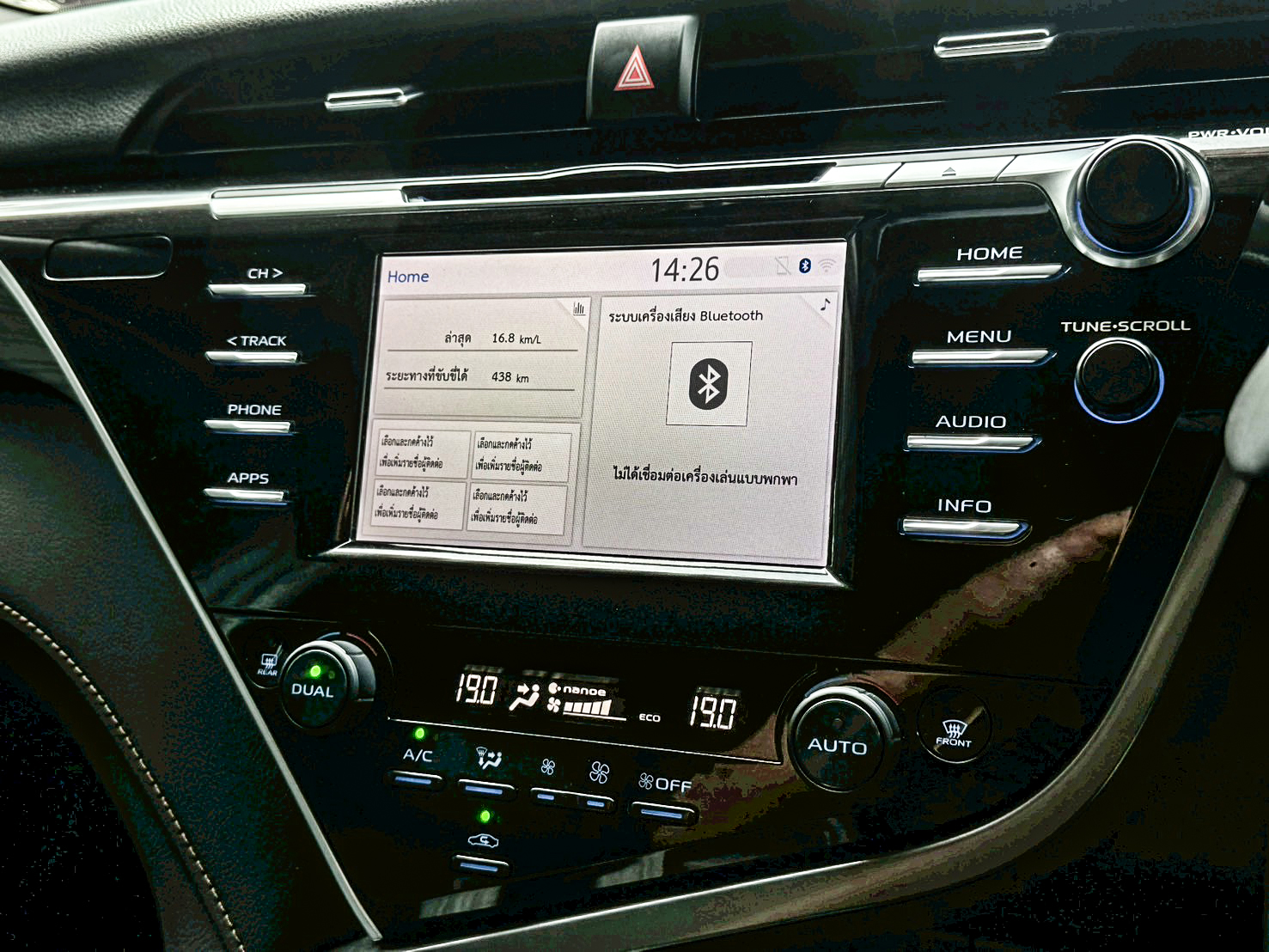 ชื่อรุ่น: TOYOTA CAMRY 2.5 HYBRID ปี: 2020 ไมล์: 86,319 km (วารันตีศูนย์ 2ปี 20,000km) ราคา: 799,000 บาท ผ่อน 84งวด = 13,377 (ค่างวดจะแตกต่างกันตามธนาคารและดอกเบี้ย) Option เพิ่มเติมของรุ่น HV - เครื่องยนต์เบนซิน 2.5 ลิตร + มอเตอร์ไฟฟ้า รวม 211 แรงม้า - ถังน้ำมันขนาด 50 ลิตร รองรับน้ำมันสูงสุด E20 - แบตเตอรี่ Ni-MH ความจุไฟฟ้า 6.5 แอมแปร์-ชั่วโมง - เกียร์อัตโนมัติ E-CVT พร้อมโหมด EV Drive - ล้ออัลลอย ขนาด 17 นิ้ว พร้อมยาง 215/55 R17 - ไฟหน้า Projector Lens แบบ Bi-LED - ไฟ Daytime Running Lights แบบ LED 3 Strips - ไฟท้าย แบบ Full-LED (ไฟเบรก – ไฟเลี้ยว – ไฟถอย) - กระจังหน้า ตกแต่งด้วยเส้นแถบโครเมียม - คิ้วฝาท้าย แบบโครเมียม - ภายในห้องโดยสารตกแต่งด้วย ลายไม้ Hybrid Onyx Ornament - เบาะนั่งหุ้มด้วยหนังแบบ Smooth Leather - พวงมาลัย ปรับระดับด้วยระบบไฟฟ้า - ระบบบันทึกตำแหน่งพวงมาลัย Memory - ระบบกรองอากาศภายในห้องโดยสาร nanoe - ระบบ T-Connect TELEMATICS - Find My Car เช็คตำแหน่งตัวรถผ่าน Application Find My Car หรือ Apple Watch - Service Reminder ระบบแจ้งเตือนการบำรุงรักษารถยนต์ เมื่อถึงรอบตามระยะ - Service Appointment บริการนัดหมายเข้าศูนย์บริการผ่านระบบออนไลน์ - My Message แจ้งข่าวสาร ข้อมูลส่วนลด พร้อมสิทธิพิเศษจากโครงการ Toyota Privilege - Parking Alert ระบบแจ้งเตือนผ่าน Notification เมื่อรถถูกสตาร์ท หรือ เคลื่อนที่ - Stolen Vehicle Tracking ระบบตรวจสอบตำแหน่งรถยนต์ เมื่อถูกโจรกรรม - My Toyota Wi-Fi กระจายสัญญาณ เชื่อมต่อความบันเทิงได้พร้อมกันสูงสุด 9 อุปกรณ์ - OPS (Operation Service) ผู้ช่วยค้นหาเส้นทางตลอด 24 ชั่วโมง พร้อมบริการจองร้านอาหาร SOS ประสานงานช่วยเหลือฉุกเฉินตลอด 24 ชั่วโมง - Roadside Service บริการประสานงานไปยังผู้แทนจำหน่ายใกล้เคียง เพื่อขอรับความช่วยเหลือบนท้องถนน - Health บริการประสานงานแจ้งเหตุฉุกเฉินด้านการแพทย์ โดยการส่งตำแหน่งที่คุณอยู่ไปยังสถาบันการแพทย์ฉุกเฉินแห่งชาติ (สพฉ.)