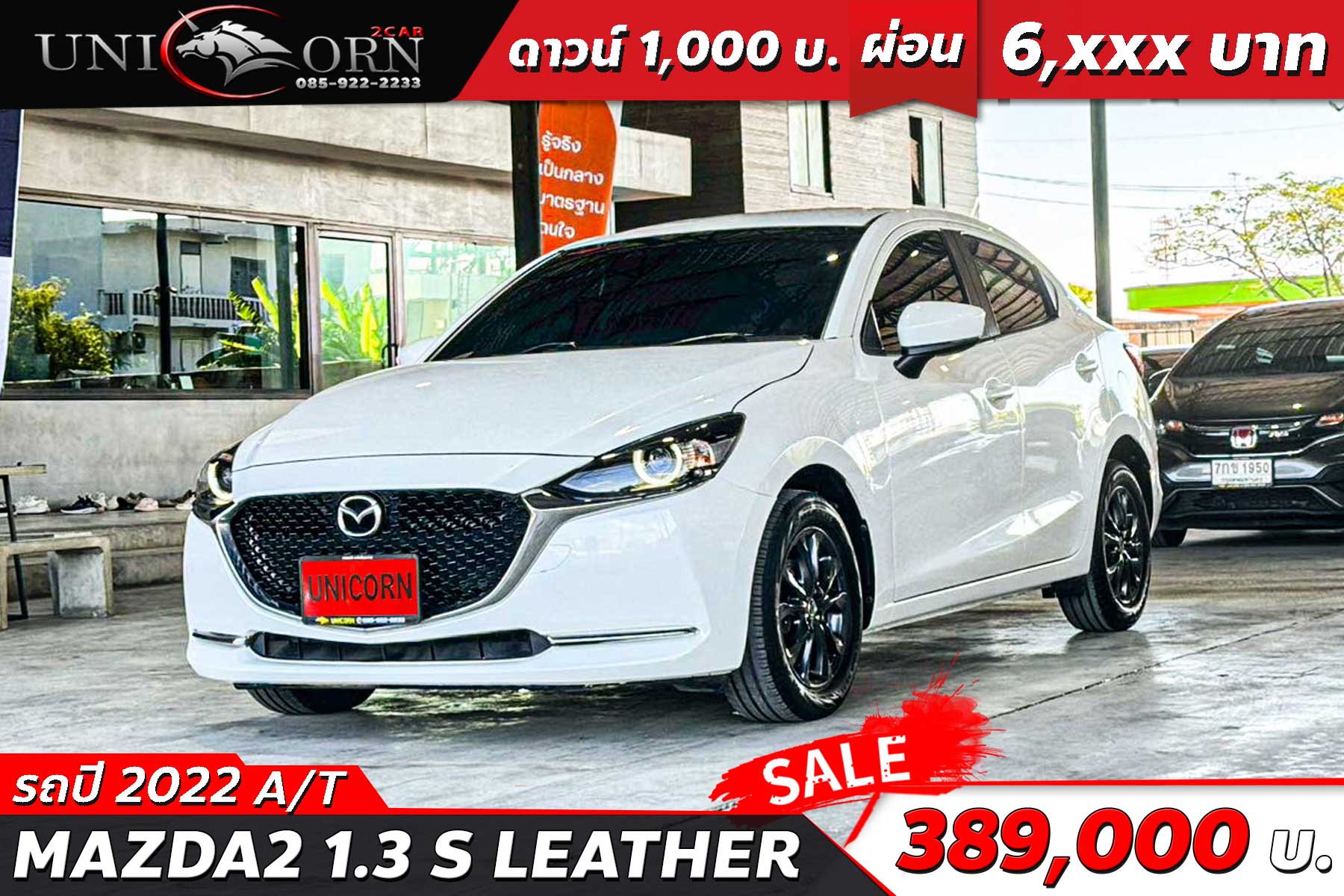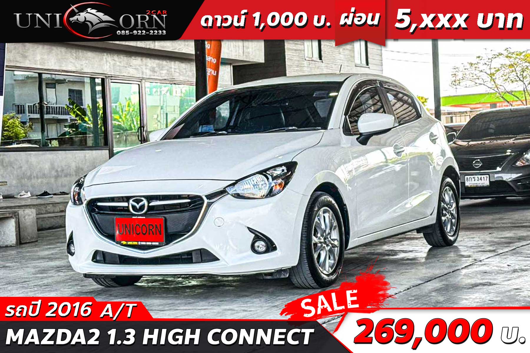 ชื่อรุ่น: MAZDA2 1.3 HIGH CONNECT ปี: 2016 ไมล์: 176,151 km ราคา: 259,000 บาท ผ่อน 84งวด = 5,136 (ค่างวดจะแตกต่างกันตามธนาคารและดอกเบี้ย) Option มาตรฐาน - ไฟหน้าโปรเจกเตอร์ฮาโลเจน - ไฟส่องสว่างเวลากลางวัน (Daytime Running Light - LED) - ไฟท้าย LED - ไฟตัดหมอกคู่หน้า - กระจกมองข้างปรับและพับไฟฟ้า พร้อมไฟเลี้ยวในตัว - มือจับประตูสีเดียวกับตัวรถ - ล้ออัลลอย 15 นิ้ว - เบาะผ้าสีดำลายสปอร์ต (ชุดแต่งเบาะหนัง) - พวงมาลัยหุ้มหนัง ปรับได้ 4 ทิศทาง - หน้าจอ Center Display แบบสัมผัสขนาด 7 นิ้ว - ระบบควบคุมหน้าจอกลาง (Center Commander) - ระบบปรับอากาศแบบธรรมดา - กุญแจอัจฉริยะ (Smart Keyless Entry) - ปุ่มสตาร์ทเครื่องยนต์ (Push Start) - หน้าจอสัมผัส 7 นิ้ว พร้อมระบบ Mazda Connect - รองรับวิทยุ, MP3, USB, Bluetooth - รองรับ Apple CarPlay และ Android Auto (ผ่านการอัปเดตซอฟต์แวร์ในบางคัน) - ลำโพง 6 ตำแหน่ง - ถุงลมนิรภัยคู่หน้า (Dual Front Airbags) - ระบบเบรก ABS/EBD/BA - ระบบควบคุมการทรงตัว (DSC) - ระบบป้องกันล้อหมุนฟรี (TCS) - ระบบช่วยออกตัวบนทางลาดชัน (HLA) - เซ็นเซอร์กะระยะถอยหลัง - เข็มขัดนิรภัยคู่หน้าแบบดึงรั้งอัตโนมัติ (Pretensioner) - เครื่องยนต์เบนซิน 1.3 ลิตร Skyactiv-G 93 แรงม้า - เกียร์อัตโนมัติ Skyactiv-Drive 6 สปีด พร้อม Manual Mode - ระบบ i-Stop (ดับเครื่องยนต์อัตโนมัติขณะจอด) - ระบบ G-Vectoring Control (GVC) เพื่อการควบคุมรถที่แม่นยำขึ้น