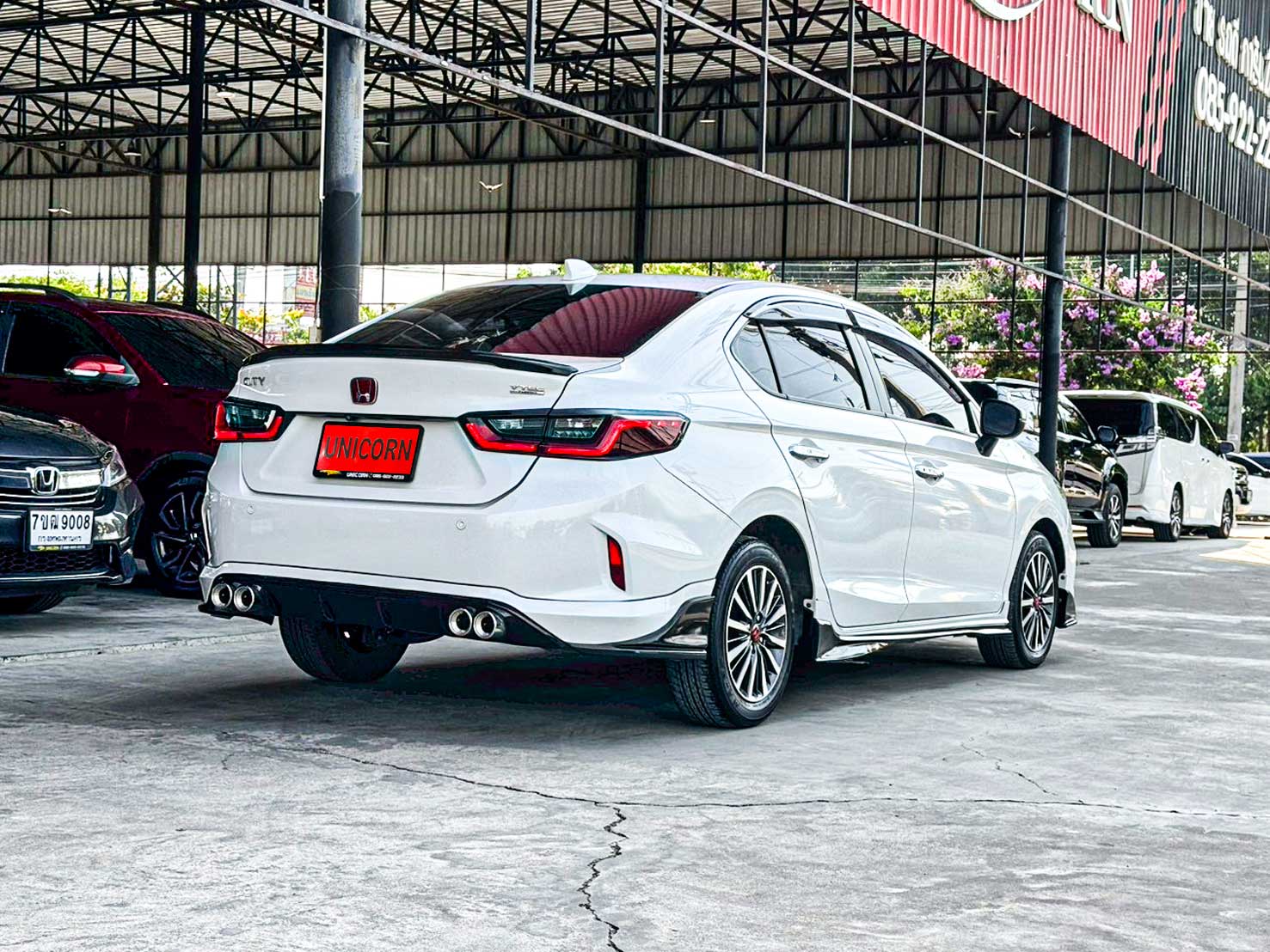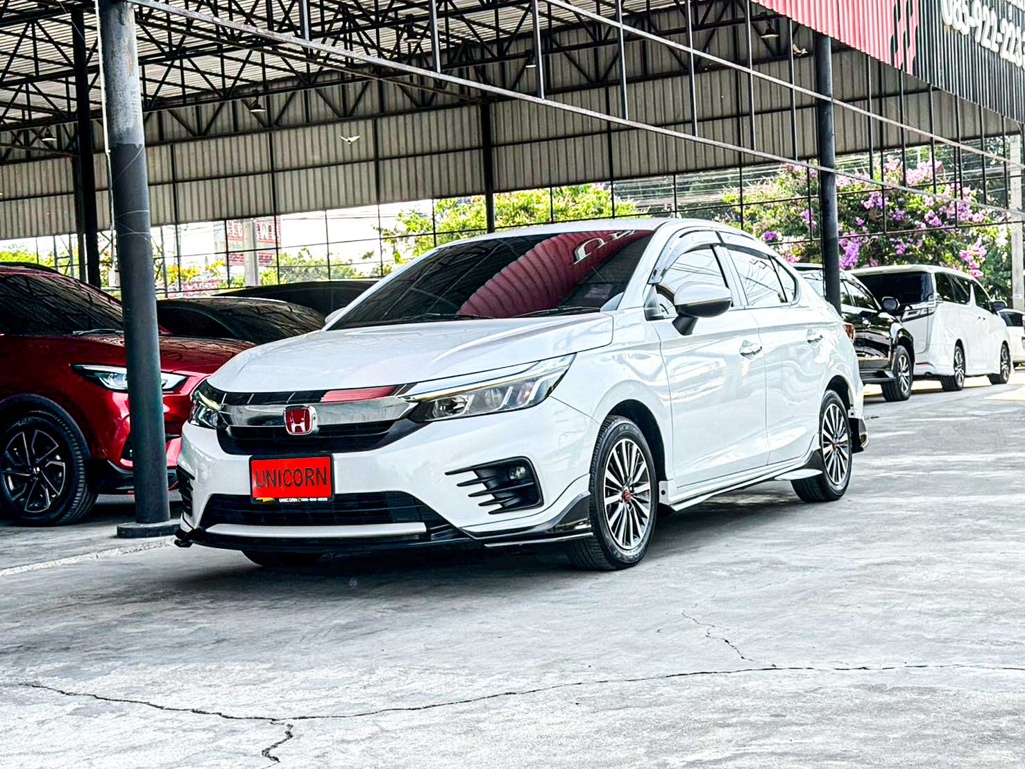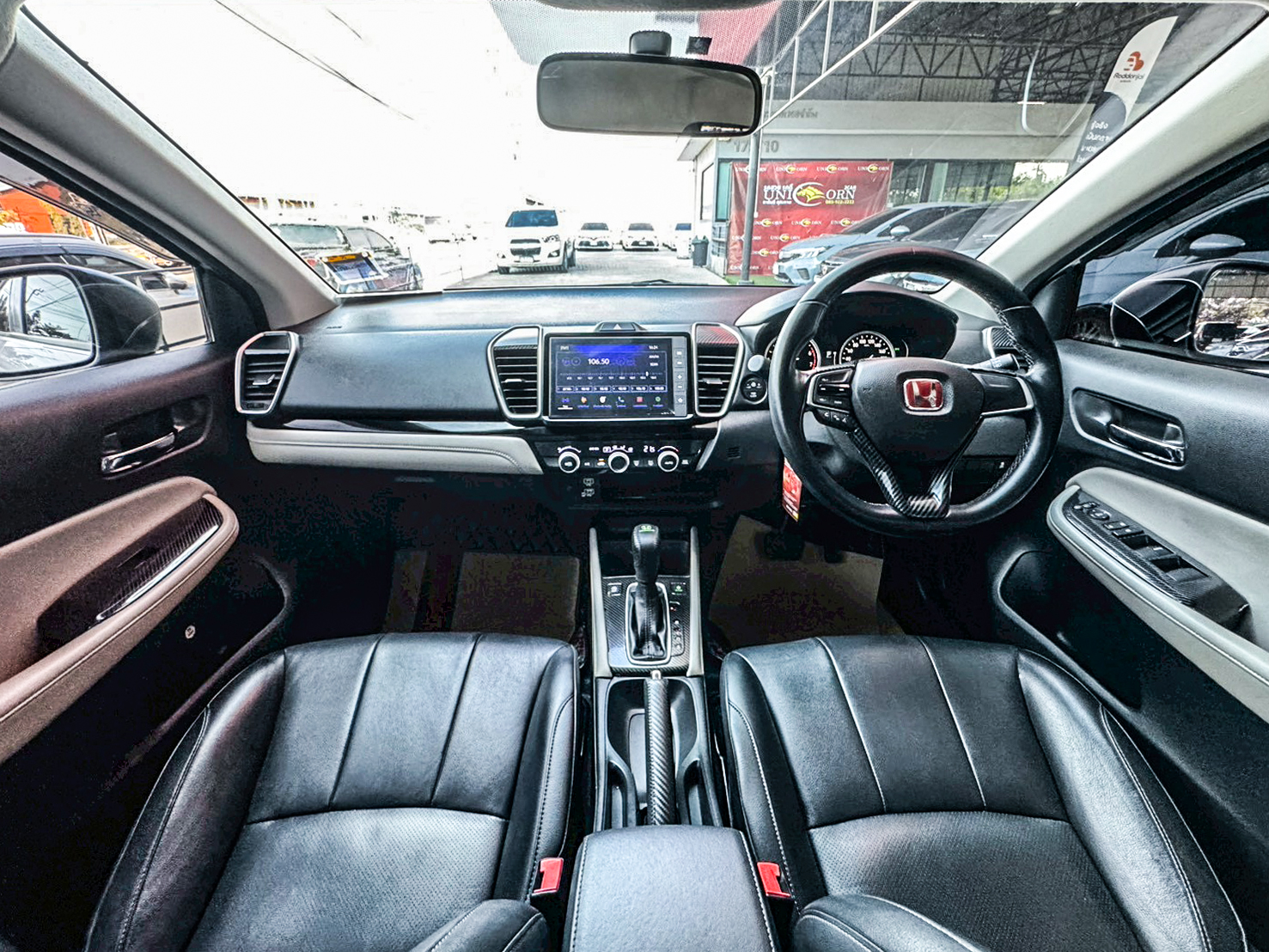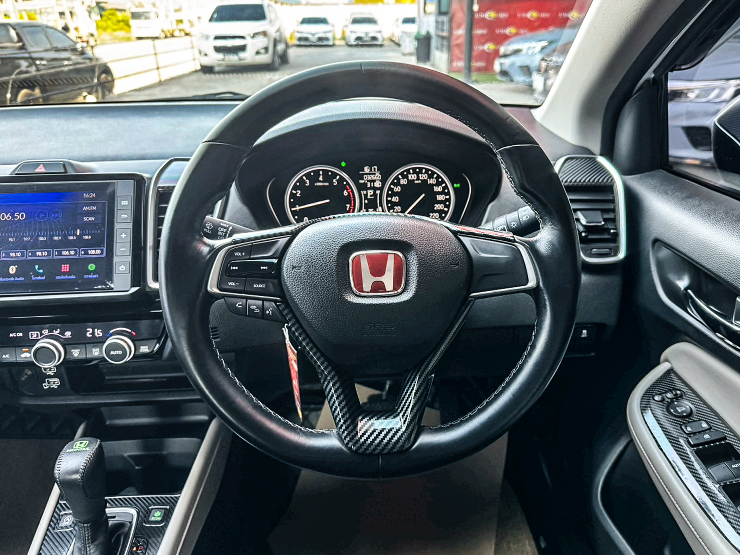 ชื่อรุ่น: HONDA CITY 1.0 TURBO SV ปี: 2022 ไมล์: 32,660 km ราคา: 449,000 บาท ผ่อน 84งวด = 7,518 (ค่างวดจะแตกต่างกันตามธนาคารและดอกเบี้ย) ชุดแต่งเพิ่มเติม - สเกิร์ตรอบคัน - Logo H แดง - พรมหนังสีดำแดง - ภายในตกแต่งลายคาร์บอนบางจุด Option ของรุ่น SV - ล้ออัลลอย สีทูโทน ขนาด 15 นิ้ว พร้อมยาง 185/60 R15 - มือเปิดประตูภายนอก โครเมียม - ภายในห้องโดยสาร สีทูโทน (สีเบจ Ivory/สีดำ) - เบาะนั่งหุ้มด้วยหนัง สีดำ - วัสดุตกแต่งภายในห้องโดยสาร สีดำเงา Piano Black - หน้าจอเครื่องเสียงระบบสัมผัส Advanced Touch ขนาด 8 นิ้ว - รองรับระบบ Apple Car Play / Android Auto - รองรับการเชื่อมต่อ Smart Phone - รองรับการสั่งงานด้วยเสียง SIRI - ช่องเชื่อมต่อ USB 2 ช่อง - กล้องมองภาพขณะถอยจอด ปรับมุมมองได้ 3 ระดับ Option มาตรฐาน - เครื่องยนต์เบนซิน 1.0 TURBO 122 แรงม้า 173 นิวตันเมตร - เกียร์อัตโนมัติ CVT รองรับน้ำมัน E20 - ระบบเบรกคู่หน้า ดิสก์เบรก / คู่หลัง ดรัมเบรก - พวงมาลัยพาวเวอร์ไฟฟ้า EPS - ช่วงล่างด้านหน้า McPherson Strut พร้อมเหล็กกันโคลง - ช่วงล่างด้านหลัง Torsion Beam - ยางอะไหล่ T135/80 D15 - ไฟหน้า Projector Lens แบบฮาโลเจน - ระบบปิดไฟหน้าอัตโนมัติ เมื่อดับเครื่องยนต์ - ไฟ Daytime Running Light แบบ LED - ไฟท้าย แบบ LED - กระจังหน้าโครเมียม - ระบบปัดน้ำฝน แบบปรับตั้งหน่วงเวลาได้ - เสาอากาศแบบครีบฉลาม - ระบบไล่ฝ้ากระจกบังลมหน้า – หลัง - กระจกมองข้าง ปรับด้วยไฟฟ้า พับด้วยมือ - ภายในห้องโดยสาร โทนสีดำ - เบาะนั่งคนขับ ปรับด้วยมือ 6 ทิศทาง - เบาะนั่งผู้โดยสารตอนหน้า ปรับด้วยมือ 4 ทิศทาง - ระบบปรับอากาศ แบบธรรมดา - กุญแจรีโมท พร้อมสวิตซ์เปิดฝากระโปรงท้าย - ปุ่มสตาร์ทเครื่องยนต์ Push Start Button - ระบบ Idle Stop พร้อมสวิตซ์เปิด-ปิด - พวงมาลัยปรับได้ 4 ทิศทาง (ขึ้น-ลง-เข้า-ออก) - มาตรวัด พร้อมหน้าจอแสดงข้อมูลการขับขี่ MID - ไฟแสดงผลการขับขี่แบบประหยัด Eco Indicator - ปุ่ม ECON - ช่องชาร์จไฟ 12V 1 ตำแหน่ง - ที่บังแดด พร้อมกระจกแต่งหน้า ฝั่งคนขับ - ไฟอ่านแผนที่ด้านหน้า - ช่องเก็บเอกสารด้านหลังเบาะนั่งผู้โดยสารตอนหน้า - ไฟส่องสว่างภายในห้องโดยสาร - มือจับภายในห้องโดยสาร 3 ตำแหน่ง - ไฟส่องสว่างที่เก็บสัมภาระด้านท้าย - ระบบเชื่อมต่อไร้สาย Bluetooth - สวิตซ์ควบคุมเครื่องเสียง / รับสาย-โทรออก บนพวงมาลัย - ช่องเชื่อมต่อ USB - ลำโพง 4 ตำแหน่ง - ระบบเบรกป้องกันล้อล็อค ABS - ระบบกระจายแรงเบรก EBD - ระบบช่วยควบคุมการทรงตัวขณะเข้าโค้ง VSA - ระบบช่วยออกตัวบนทางลาดชัน HSA - สัญญาณไฟฉุกเฉินอัตโนมัติขณะเบรกกะทันหัน ESS - ระบบล็อกประตูรถอัตโนมัติ Auto Door Lock by Speed - ถุงลมนิรภัย 4 ตำแหน่ง (คู่หน้า-ด้านข้าง) - ระบบเตือนคาดเข็มขัดนิรภัยผู้โดยสารด้านหน้า - ระบบสัญญาณกันขโมย - ระบบกุญแจนิรภัย Immobilizer - จุดยึดเบาะนั่งเด็ก ISOFIX