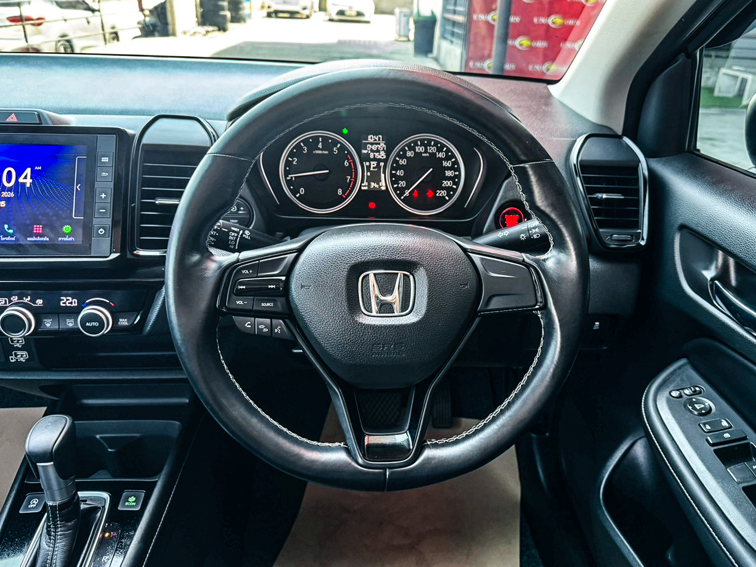 ชื่อรุ่น: HONDA CITY 1.0 TURBO SV ปี: 2021 ไมล์: 48,757 km ราคา: 449,000 บาท ผ่อน 84งวด = 7,518 (ค่างวดจะแตกต่างกันตามธนาคารและดอกเบี้ย) Option ของรุ่น SV - ล้ออัลลอย สีทูโทน ขนาด 15 นิ้ว พร้อมยาง 185/60 R15 - มือเปิดประตูภายนอก โครเมียม - ภายในห้องโดยสาร สีทูโทน (สีเบจ Ivory/สีดำ) - เบาะนั่งหุ้มด้วยหนัง สีดำ - วัสดุตกแต่งภายในห้องโดยสาร สีดำเงา Piano Black - หน้าจอเครื่องเสียงระบบสัมผัส Advanced Touch ขนาด 8 นิ้ว - รองรับระบบ Apple Car Play / Android Auto - รองรับการเชื่อมต่อ Smart Phone - รองรับการสั่งงานด้วยเสียง SIRI - ช่องเชื่อมต่อ USB 2 ช่อง - กล้องมองภาพขณะถอยจอด ปรับมุมมองได้ 3 ระดับ Option มาตรฐาน - เครื่องยนต์เบนซิน 1.0 TURBO 122 แรงม้า 173 นิวตันเมตร - เกียร์อัตโนมัติ CVT รองรับน้ำมัน E20 - ระบบเบรกคู่หน้า ดิสก์เบรก / คู่หลัง ดรัมเบรก - พวงมาลัยพาวเวอร์ไฟฟ้า EPS - ช่วงล่างด้านหน้า McPherson Strut พร้อมเหล็กกันโคลง - ช่วงล่างด้านหลัง Torsion Beam - ยางอะไหล่ T135/80 D15 - ไฟหน้า Projector Lens แบบฮาโลเจน - ระบบปิดไฟหน้าอัตโนมัติ เมื่อดับเครื่องยนต์ - ไฟ Daytime Running Light แบบ LED - ไฟท้าย แบบ LED - กระจังหน้าโครเมียม - ระบบปัดน้ำฝน แบบปรับตั้งหน่วงเวลาได้ - เสาอากาศแบบครีบฉลาม - ระบบไล่ฝ้ากระจกบังลมหน้า – หลัง - กระจกมองข้าง ปรับด้วยไฟฟ้า พับด้วยมือ - ภายในห้องโดยสาร โทนสีดำ - เบาะนั่งคนขับ ปรับด้วยมือ 6 ทิศทาง - เบาะนั่งผู้โดยสารตอนหน้า ปรับด้วยมือ 4 ทิศทาง - ระบบปรับอากาศ แบบธรรมดา - กุญแจรีโมท พร้อมสวิตซ์เปิดฝากระโปรงท้าย - ปุ่มสตาร์ทเครื่องยนต์ Push Start Button - ระบบ Idle Stop พร้อมสวิตซ์เปิด-ปิด - พวงมาลัยปรับได้ 4 ทิศทาง (ขึ้น-ลง-เข้า-ออก) - มาตรวัด พร้อมหน้าจอแสดงข้อมูลการขับขี่ MID - ไฟแสดงผลการขับขี่แบบประหยัด Eco Indicator - ปุ่ม ECON - ช่องชาร์จไฟ 12V 1 ตำแหน่ง - ที่บังแดด พร้อมกระจกแต่งหน้า ฝั่งคนขับ - ไฟอ่านแผนที่ด้านหน้า - ช่องเก็บเอกสารด้านหลังเบาะนั่งผู้โดยสารตอนหน้า - ไฟส่องสว่างภายในห้องโดยสาร - มือจับภายในห้องโดยสาร 3 ตำแหน่ง - ไฟส่องสว่างที่เก็บสัมภาระด้านท้าย - ระบบเชื่อมต่อไร้สาย Bluetooth - สวิตซ์ควบคุมเครื่องเสียง / รับสาย-โทรออก บนพวงมาลัย - ช่องเชื่อมต่อ USB - ลำโพง 4 ตำแหน่ง - ระบบเบรกป้องกันล้อล็อค ABS - ระบบกระจายแรงเบรก EBD - ระบบช่วยควบคุมการทรงตัวขณะเข้าโค้ง VSA - ระบบช่วยออกตัวบนทางลาดชัน HSA - สัญญาณไฟฉุกเฉินอัตโนมัติขณะเบรกกะทันหัน ESS - ระบบล็อกประตูรถอัตโนมัติ Auto Door Lock by Speed - ถุงลมนิรภัย 4 ตำแหน่ง (คู่หน้า-ด้านข้าง) - ระบบเตือนคาดเข็มขัดนิรภัยผู้โดยสารด้านหน้า - ระบบสัญญาณกันขโมย - ระบบกุญแจนิรภัย Immobilizer - จุดยึดเบาะนั่งเด็ก ISOFIX