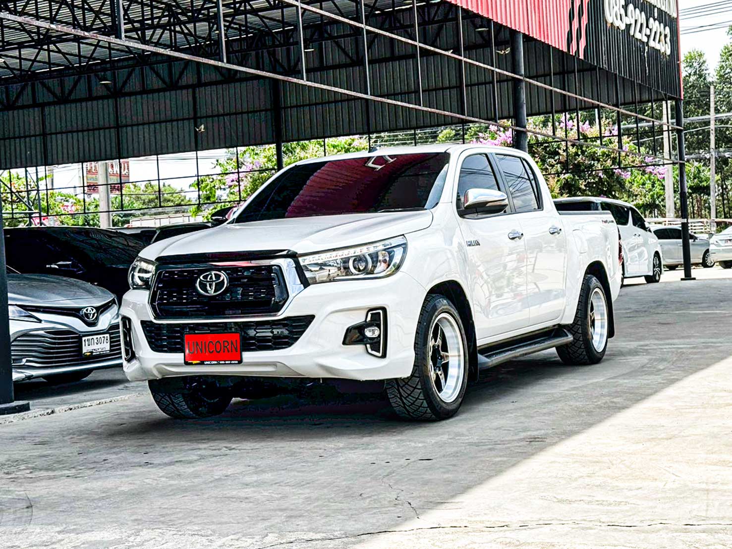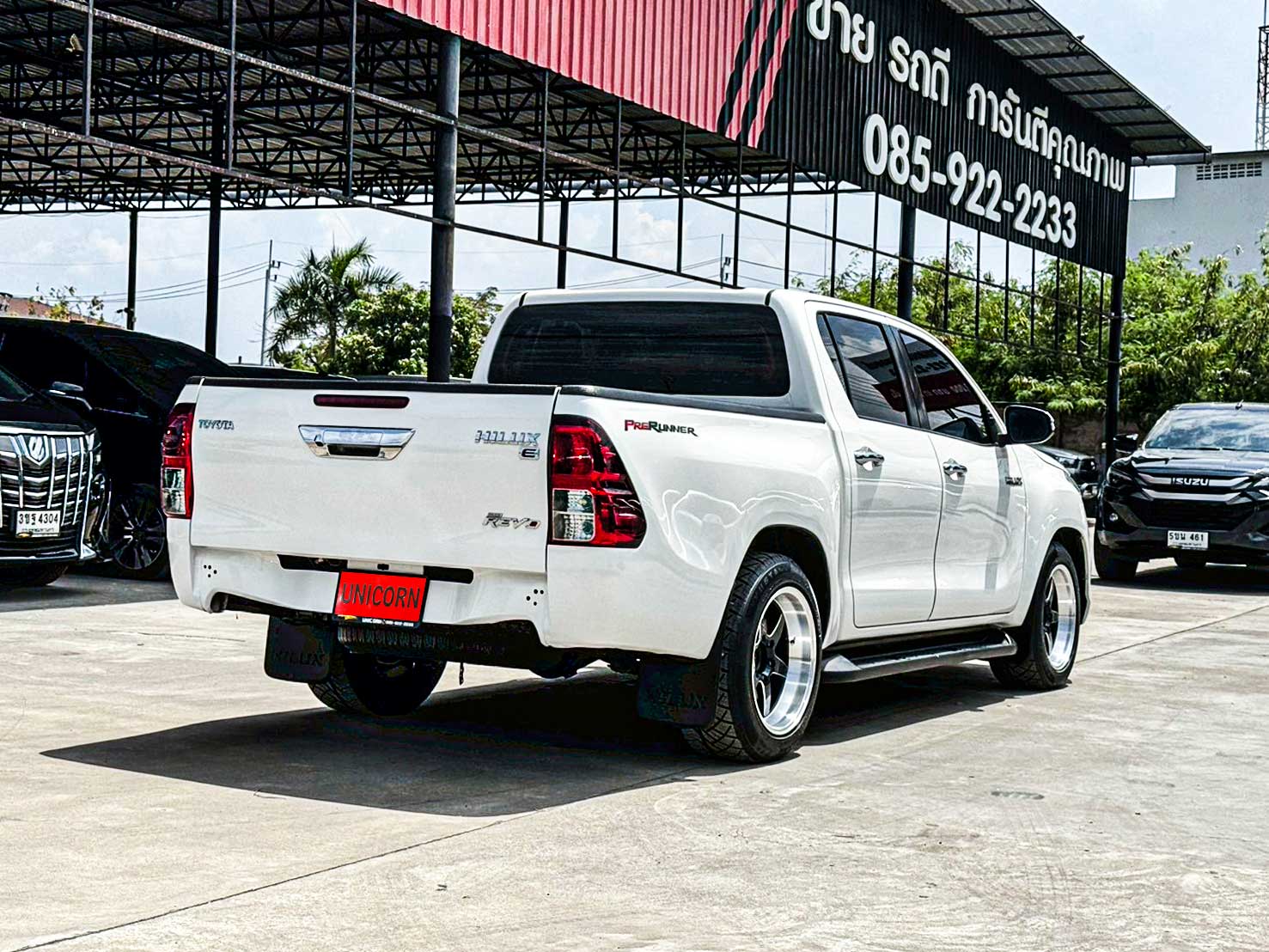 ชุดแต่งเพิ่มเติม - ล้อแม็กซ์ Weld - วัดบูส Auto Meter - จัดทรงยี่ราฟแคระ Option มาตรฐาน - เครื่องยนต์ดีเซล 2.4 ลิตร รหัส 2GD-FTV (VN Turbo + Intercooler) - กำลังสูงสุด 150 แรงม้า ที่ 3,400 รอบ/นาที - แรงบิดสูงสุด 400 นิวตันเมตร ที่ 1,600–2,000 รอบ/นาที - ระบบเกียร์อัตโนมัติ 6 จังหวะ พร้อม Sequential Shift - ไฟหน้าแบบโปรเจคเตอร์ Halogen - ระบบเปิด-ปิดไฟหน้าอัตโนมัติ - ไฟส่องสว่างเวลากลางวัน (Daytime Running Light) - กระจังหน้าโครเมียมรมดำ - กระจกมองข้างปรับไฟฟ้า พร้อมไฟเลี้ยวในตัว - มือจับประตูและกระจกมองข้างสีเดียวกับตัวรถ - ภายในสีดำตกแต่งโทนเงินเมทัลลิก - เบาะผ้าสีดำ - พวงมาลัยหุ้มหนัง พร้อมปุ่มควบคุมเครื่องเสียง - หน้าจอแสดงข้อมูลการขับขี่ MID - เครื่องเสียงหน้าจอสัมผัส (Touchscreen) - รองรับ Bluetooth / USB / AUX / วิทยุ FM-AM - ระบบปรับอากาศแบบธรรมดา - กระจกหน้าต่างไฟฟ้า พร้อมระบบกันหนีบด้านคนขับ - ช่องเก็บของ / ช่องวางแก้วน้ำรอบคัน - ระบบเซ็นเซอร์ถอยหลัง 2 จุด - กล้องมองหลัง - ชุดแต่งรอบคันโทนสีเดียวกับตัวรถ (กันชน-กระจัง-ซุ้มล้อ) - กันชนหลังโครเมียม - ระบบรองรับเชื่อมต่อโทรศัพท์ - ระบบขับเคลื่อน 2 ล้อหลัง (แบบยกสูง Prerunner) - ระบบกันสะเทือนหน้าแบบอิสระปีกนกคู่ พร้อมคอยล์สปริง - ระบบกันสะเทือนหลังแบบแหนบซ้อน - ระบบเบรกหน้าแบบดิสก์เบรกมีครีบระบายความร้อน - ระบบเบรกหลังแบบดรัมเบรก - ระบบเบรก ABS / EBD / BA - ระบบควบคุมการทรงตัว VSC - ระบบป้องกันล้อหมุนฟรี TRC - ระบบช่วยออกตัวบนทางลาดชัน HAC - ระบบป้องกันการลื่นไถลขณะเข้าโค้ง TSC - ถุงลมนิรภัยคู่หน้า (Dual SRS Airbags) - ระบบกุญแจ Immobilizer + สัญญาณกันขโมย