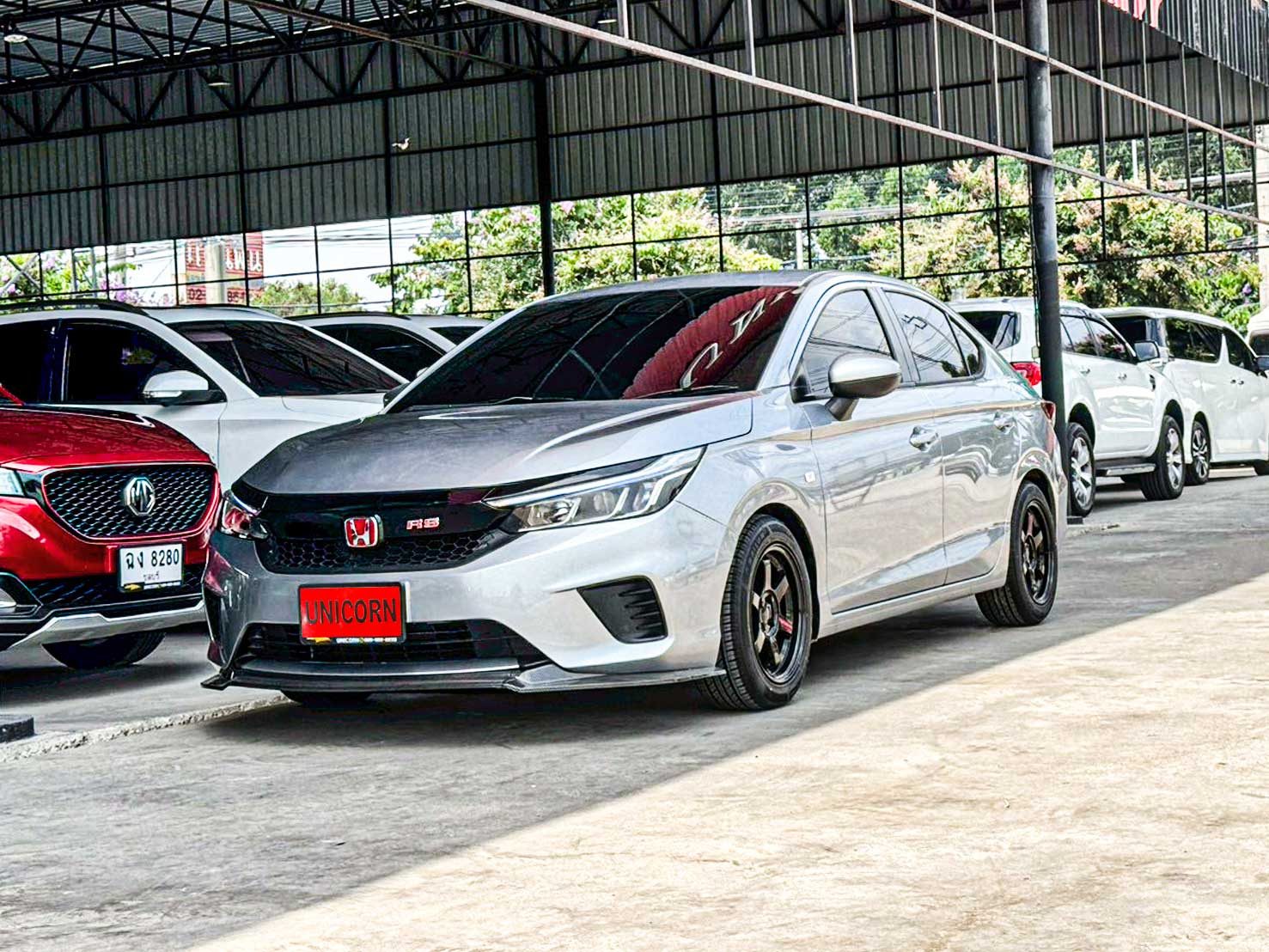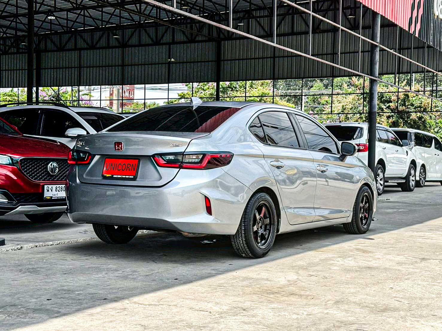 ชื่อรุ่น: HONDA CITY 1.0 TURBO S ปี: 2020 ไมล์: 125,110 km ราคา: 399,000 บาท ผ่อน 84งวด = 6,680 (ค่างวดจะแตกต่างกันตามธนาคารและดอกเบี้ย) ชุดแต่งเพิ่มเติม - Logo H แดง - ล้อแม็กซ์ TE37 สีดำ - กระจังหน้า RS - ลิ้นหน้าคาร์บอนแท้ Option มาตรฐาน - เครื่องยนต์เบนซิน 1.0 TURBO 122 แรงม้า 173 นิวตันเมตร - เกียร์อัตโนมัติ CVT รองรับน้ำมัน E20 - ระบบเบรกคู่หน้า ดิสก์เบรก / คู่หลัง ดรัมเบรก - พวงมาลัยพาวเวอร์ไฟฟ้า EPS - ช่วงล่างด้านหน้า McPherson Strut พร้อมเหล็กกันโคลง - ช่วงล่างด้านหลัง Torsion Beam - ยางอะไหล่ T135/80 D15 - ไฟหน้า Projector Lens แบบฮาโลเจน - ระบบปิดไฟหน้าอัตโนมัติ เมื่อดับเครื่องยนต์ - ไฟ Daytime Running Light แบบ LED - ไฟท้าย แบบ LED - กระจังหน้าโครเมียม - ระบบปัดน้ำฝน แบบปรับตั้งหน่วงเวลาได้ - เสาอากาศแบบครีบฉลาม - ระบบไล่ฝ้ากระจกบังลมหน้า – หลัง - กระจกมองข้าง ปรับด้วยไฟฟ้า พับด้วยมือ - ภายในห้องโดยสาร โทนสีดำ - เบาะนั่งคนขับ ปรับด้วยมือ 6 ทิศทาง - เบาะนั่งผู้โดยสารตอนหน้า ปรับด้วยมือ 4 ทิศทาง - ระบบปรับอากาศ แบบธรรมดา - กุญแจรีโมท พร้อมสวิตซ์เปิดฝากระโปรงท้าย - ปุ่มสตาร์ทเครื่องยนต์ Push Start Button - ระบบ Idle Stop พร้อมสวิตซ์เปิด-ปิด - พวงมาลัยปรับได้ 4 ทิศทาง (ขึ้น-ลง-เข้า-ออก) - มาตรวัด พร้อมหน้าจอแสดงข้อมูลการขับขี่ MID - ไฟแสดงผลการขับขี่แบบประหยัด Eco Indicator - ปุ่ม ECON - ช่องชาร์จไฟ 12V 1 ตำแหน่ง - ที่บังแดด พร้อมกระจกแต่งหน้า ฝั่งคนขับ - ไฟอ่านแผนที่ด้านหน้า - ช่องเก็บเอกสารด้านหลังเบาะนั่งผู้โดยสารตอนหน้า - ไฟส่องสว่างภายในห้องโดยสาร - มือจับภายในห้องโดยสาร 3 ตำแหน่ง - ไฟส่องสว่างที่เก็บสัมภาระด้านท้าย - ระบบเชื่อมต่อไร้สาย Bluetooth - สวิตซ์ควบคุมเครื่องเสียง / รับสาย-โทรออก บนพวงมาลัย - ช่องเชื่อมต่อ USB - ลำโพง 4 ตำแหน่ง - ระบบเบรกป้องกันล้อล็อค ABS - ระบบกระจายแรงเบรก EBD - ระบบช่วยควบคุมการทรงตัวขณะเข้าโค้ง VSA - ระบบช่วยออกตัวบนทางลาดชัน HSA - สัญญาณไฟฉุกเฉินอัตโนมัติขณะเบรกกะทันหัน ESS - ระบบล็อกประตูรถอัตโนมัติ Auto Door Lock by Speed - ถุงลมนิรภัย 4 ตำแหน่ง (คู่หน้า-ด้านข้าง) - ระบบเตือนคาดเข็มขัดนิรภัยผู้โดยสารด้านหน้า - ระบบสัญญาณกันขโมย - ระบบกุญแจนิรภัย Immobilizer - จุดยึดเบาะนั่งเด็ก ISOFIX